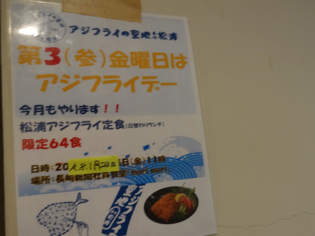 この日の「日替り」は完売していましたが月に1度「松浦のアジフライ」が提供されるそうです