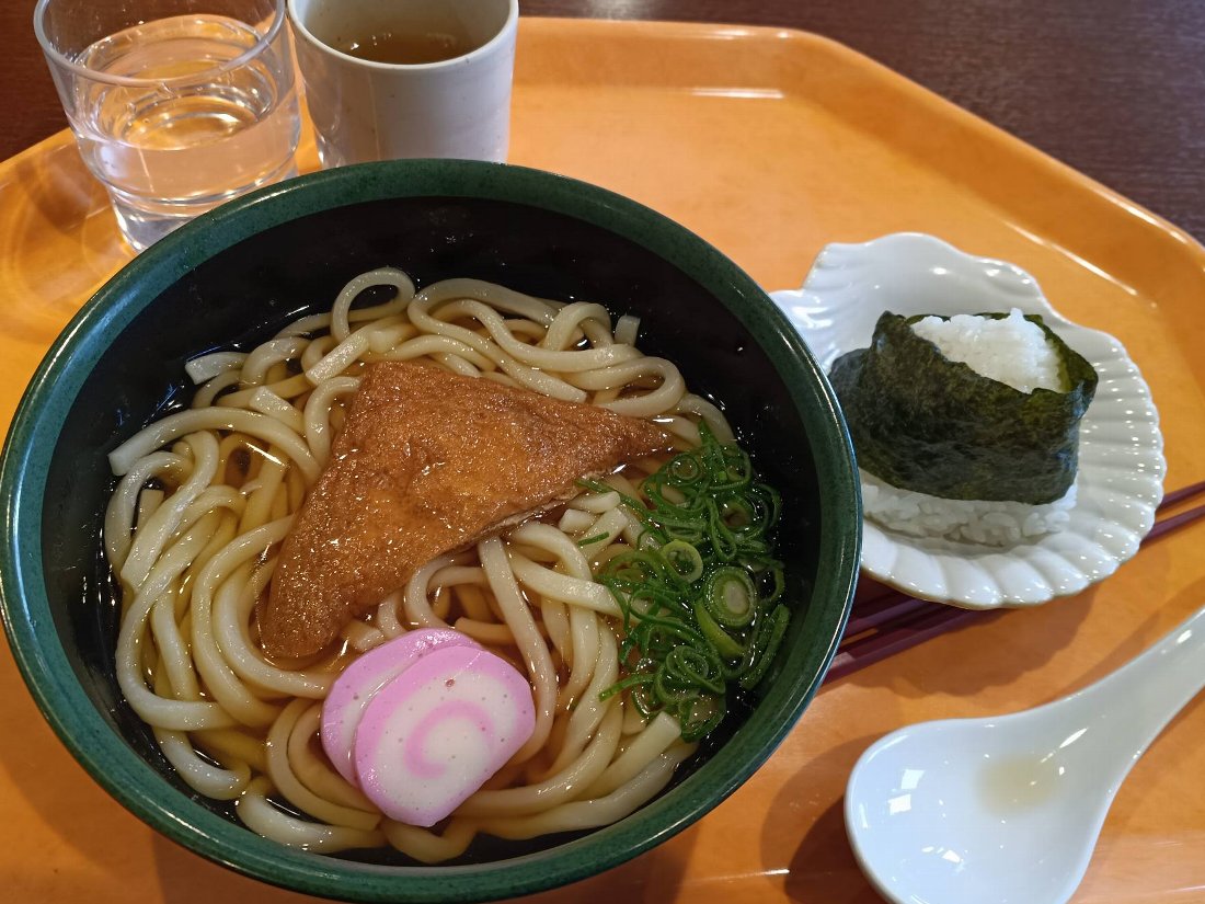 それほど空腹では無かったので「トルコライス」を食べるのはやめて「うどん+おにぎり」370円+140円にしましたが、うどんに「油揚げ+蒲鉾」が入っているは良かったですね(^^♪ ・・・思ったより美味しかったですしおにぎりが大きく結構お腹が膨れました