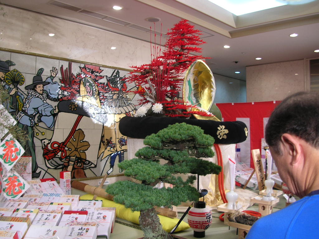 まず、栄町に出かけました。昔は酒屋が多く酒屋町が訛って栄町になったとか、今は会社や会館が多く傘鉾が飾っていたのも医師会館でした。入り口に関係者の方が座っていましたが中でも町内会長の「折式田さん」久し振りにお目にかかりましたがかなりのお年でしょうに相も変らぬ威圧感!