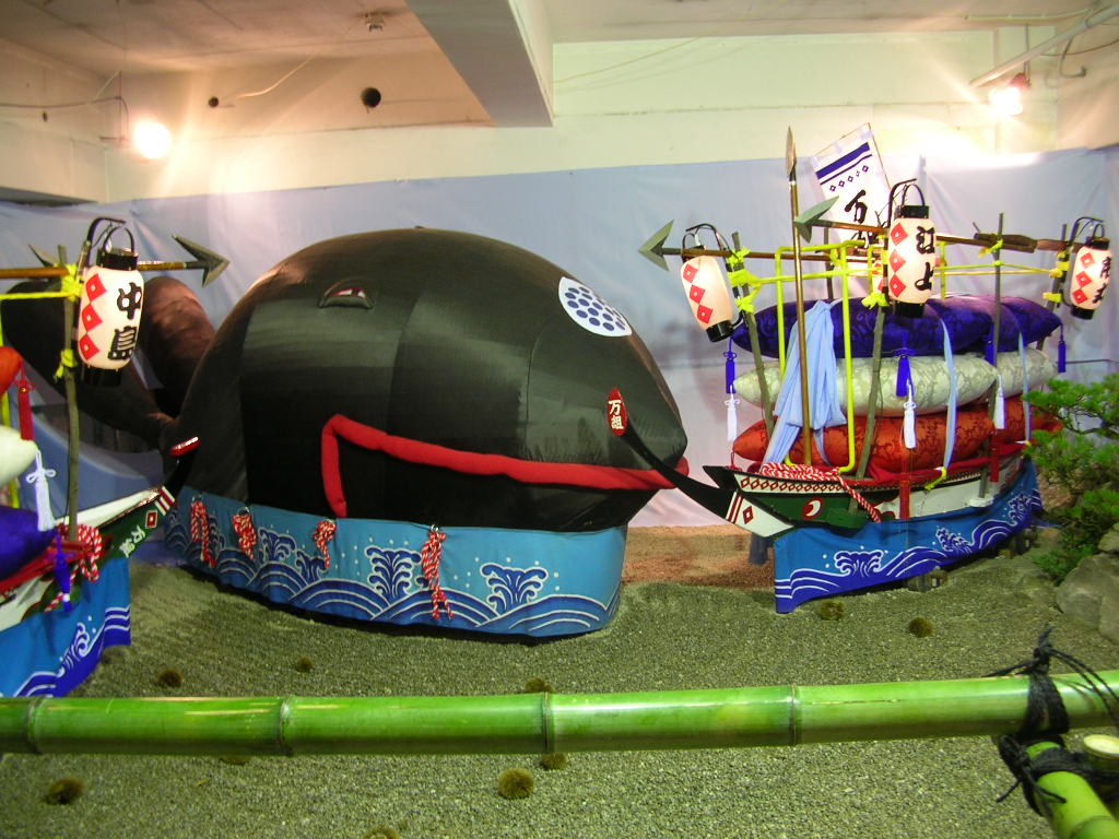 次は長崎の商店街の中心浜の町アーケードにある万屋町。ここは現役バリバリの商店が集まっていますし、通行人も多いので栄町とは比べ物にならないくらいお客さんがたくさんいました。7年ぶりの演し物とはいえ地元で有名な「鯨の潮吹き」やはり皆さん楽しみにしているのでしょうね。