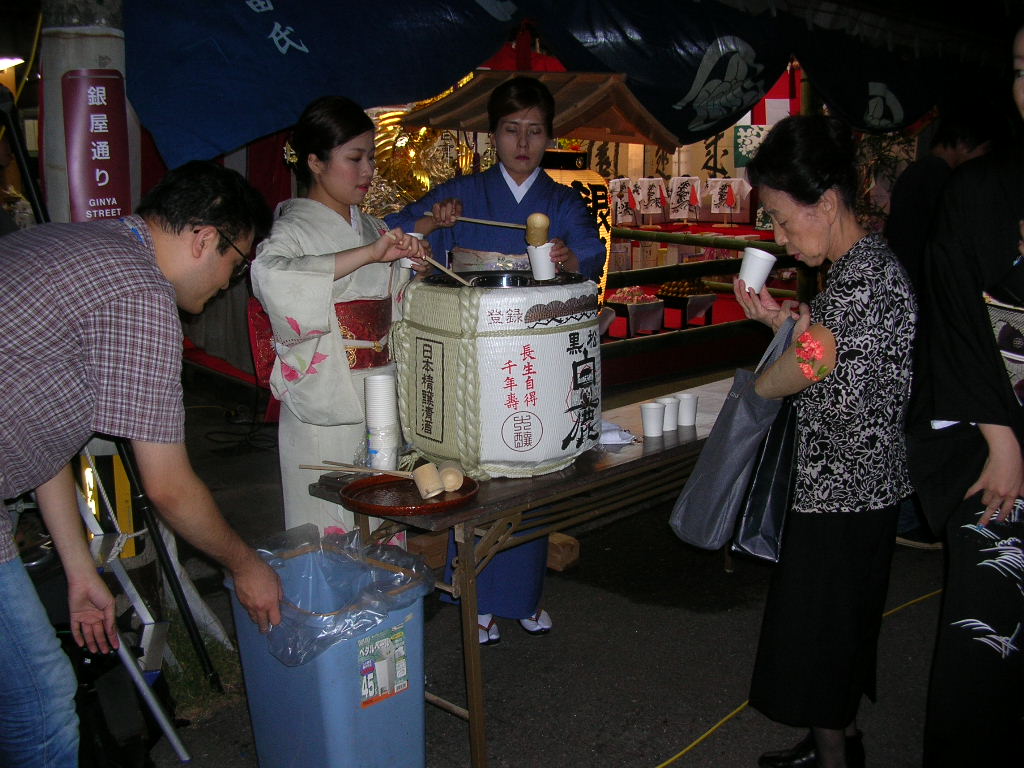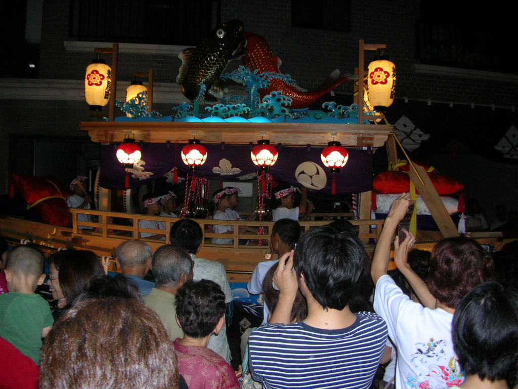 今年の一番人気銀屋町の「鯱太鼓」です。さすがにまだ宵の口なのにこの人出、良かったですね「コッコデショ」から派生したとはいえこれだけの人気になって(^^)