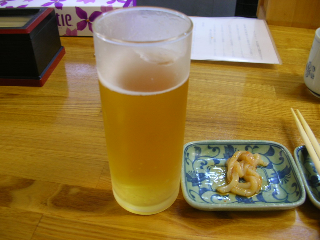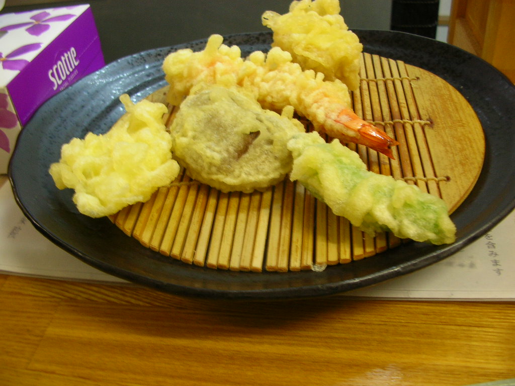 食事を注文して待っている間の楽しみが無料の「塩辛」これが美味しいんですよ(^^)v 塩辛だとやっぱりビール、この量(少し飲んでます)でグラス生ビール280円は安い!(^^)当然天ぷらは揚げたてが次々にきますから写真の後にも数種類来ました。海老2尾を含んでの7品で750円、追加の1品も100円からありますから立派です(^o^)