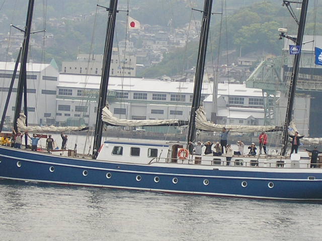 長崎帆船まつりも今日が最終日、恒例の登檣礼(とうしょうれい)を見に行きました。