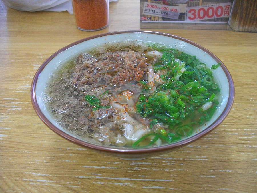 これが基山パーキングエリア名物の肉うどん420円ですが以前は360円くらいじゃなかったかな?甘い出汁と柔らかいうどんは相変わらず美味しいですね、やはり人気メニューだけのことはあります。