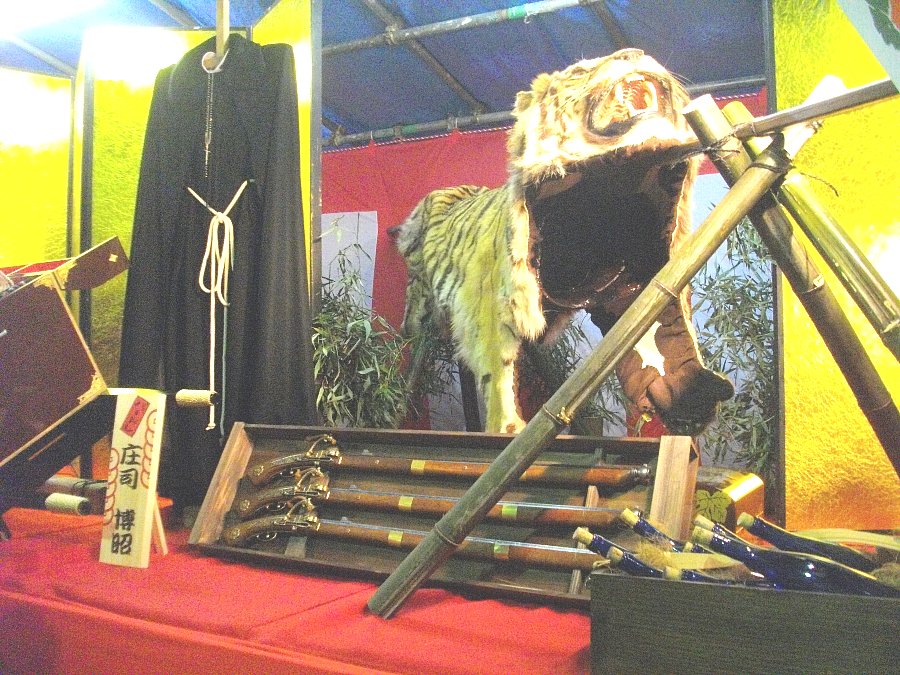 隣で展示していた衣装に混じって「火縄銃」と「虎の毛皮」が!当時の南蛮船からの贈り物を再現しているのでしょうか