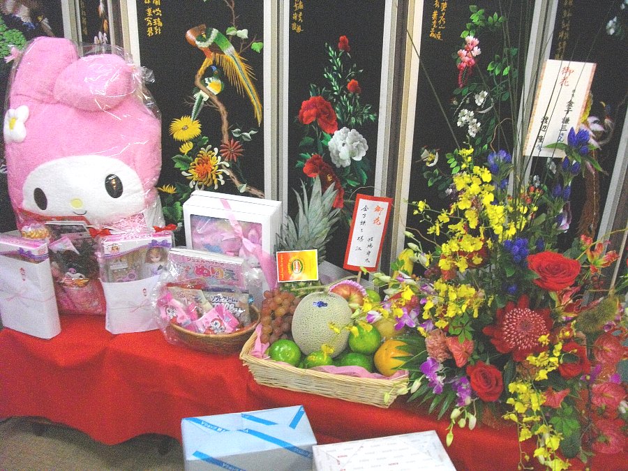 アリラン亭はお店を休んで開放していましたが眼を惹いたのは背景の屏風・・・韓国刺繍でしょうか