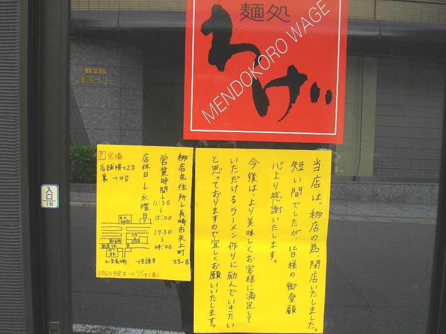 私が個人的に好きなラーメン店のひとつである五島町の「麺処 わげ」が矢上に移転するんですね・・・このブログのコメントで知り確認してきました。