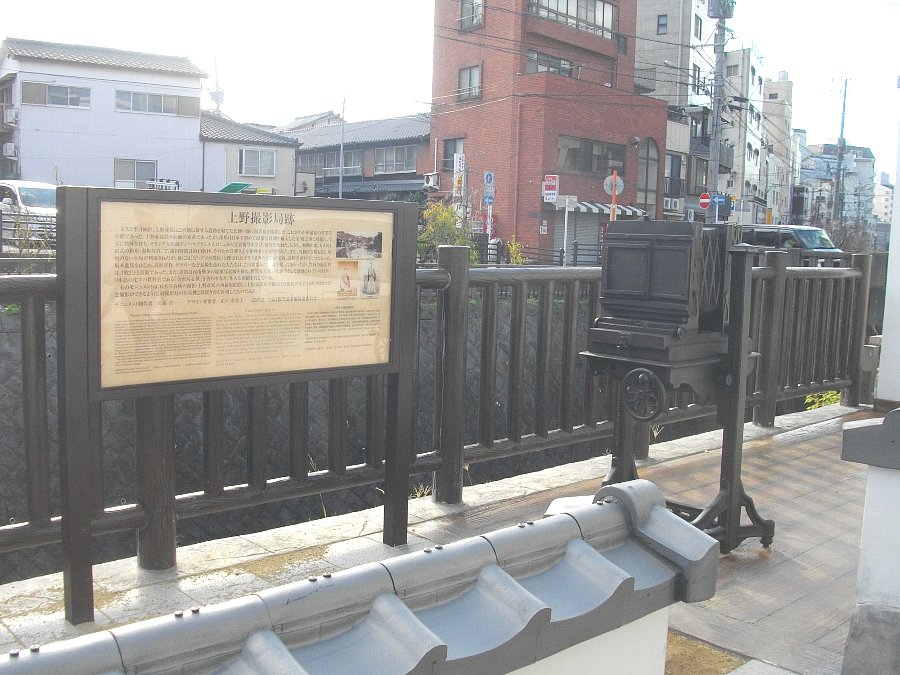 これは中島橋と次の銭屋橋との間に今年の春に作られた「上野撮影局跡」で当時の写真機と肘置き台のモニュメントがあります・・・これも今年の龍馬ブームの影響でしょうね。