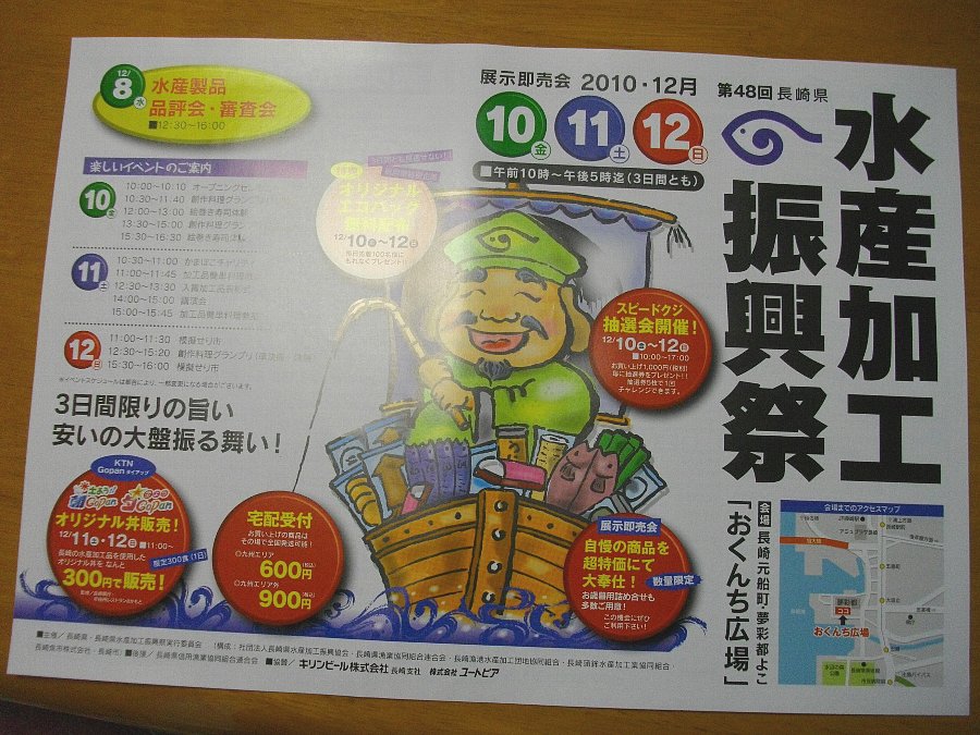 今朝の新聞に明日から三日間夢彩都横の「おくんち広場」で開催される「第48回長崎県水産加工振興祭」の折込チラシが入っていましたね。