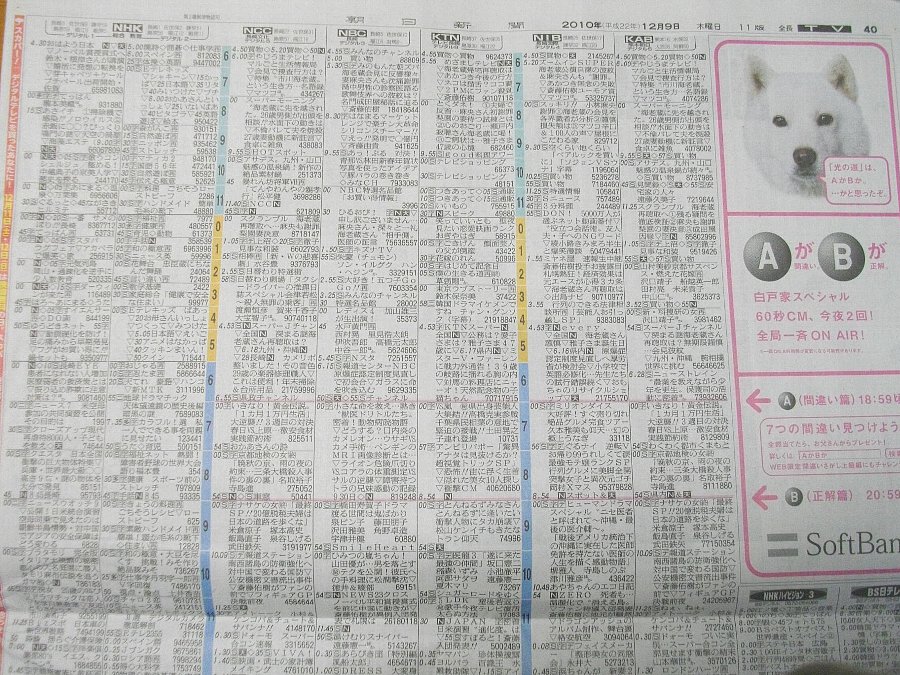 でも新聞のテレビ欄の本文上に広告を入れるとは思いがけないことをやるもんです、さすがはソフトバンクという気がしますがそのうちどこかも真似するのかもしれませんがお金がかかるでしょうね。