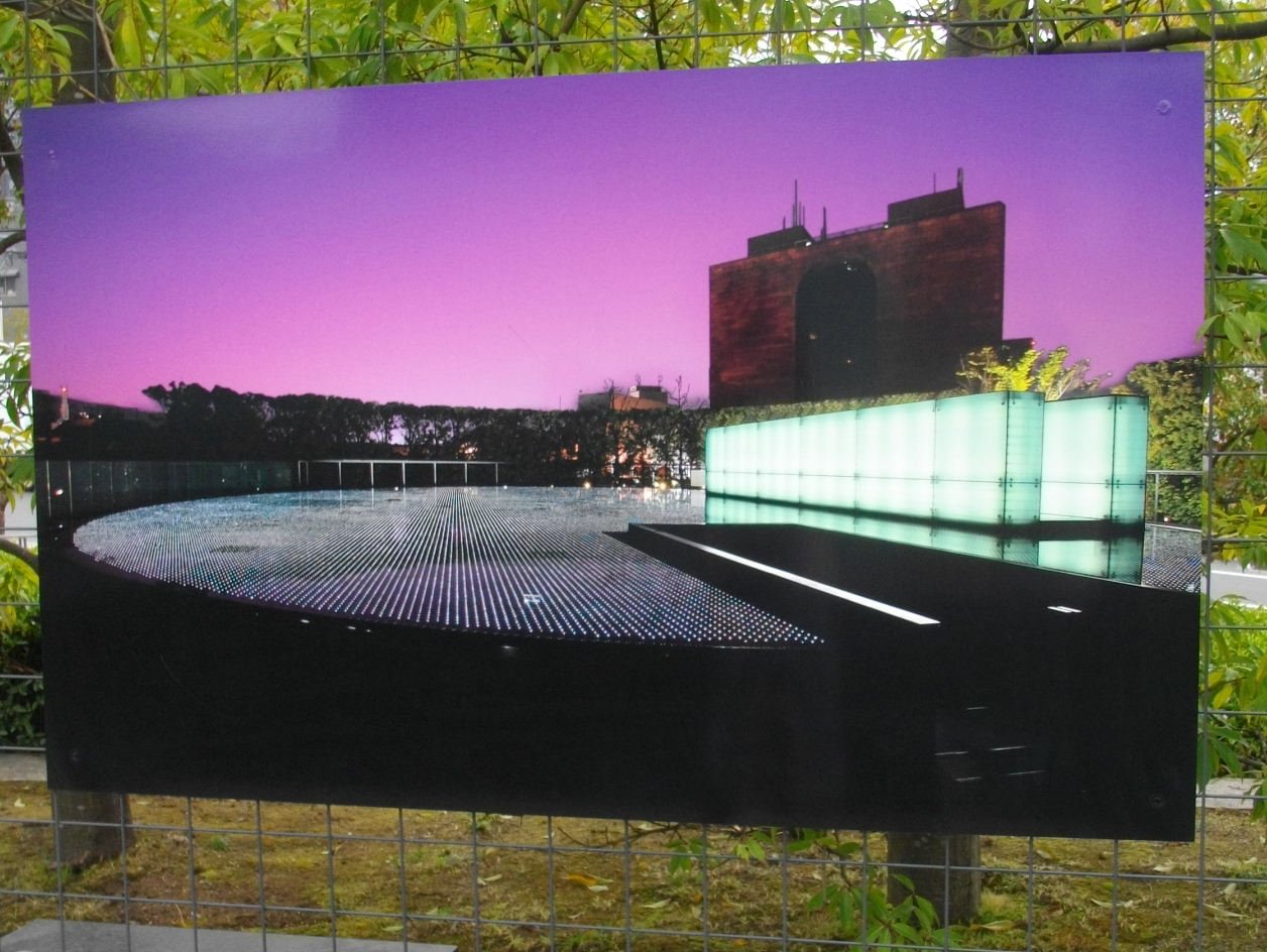 「水盤の底には約7万個(1945年末までの推計死没者数と同一)の光ファイバーを埋め込んでいる。夕暮れになると点灯し、水面に幻想的な雰囲気を醸し出す。」そうで夜の建物の様子の写真もありました。