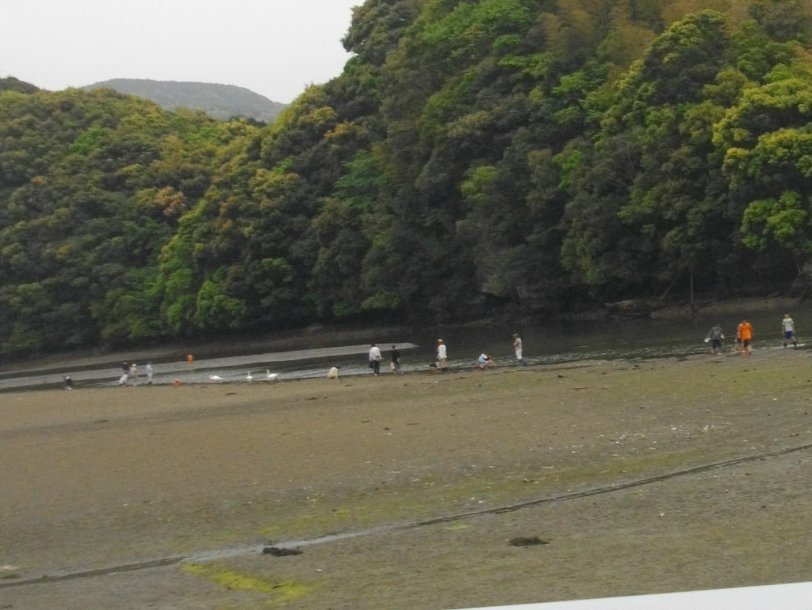 雪の浦川河口付近には潮干狩りを楽しむ人たちでしょうか大勢の家族連れがいました