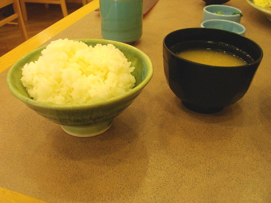 とんかつ店ではよくある「ご飯・キャベツ・味噌汁(このお店はシジミ汁)」お替り自由ですが、ご飯茶碗が最初からもう少し大きかったらお替りなんてしなくて済むのに・・・「少なめ」で頼んだのにこの量だったのでちょっと食べ過ぎ