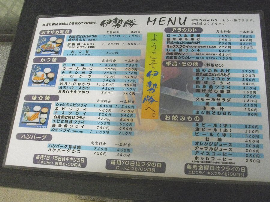 「伊勢勝 西友道の尾店」でロースカツ定食