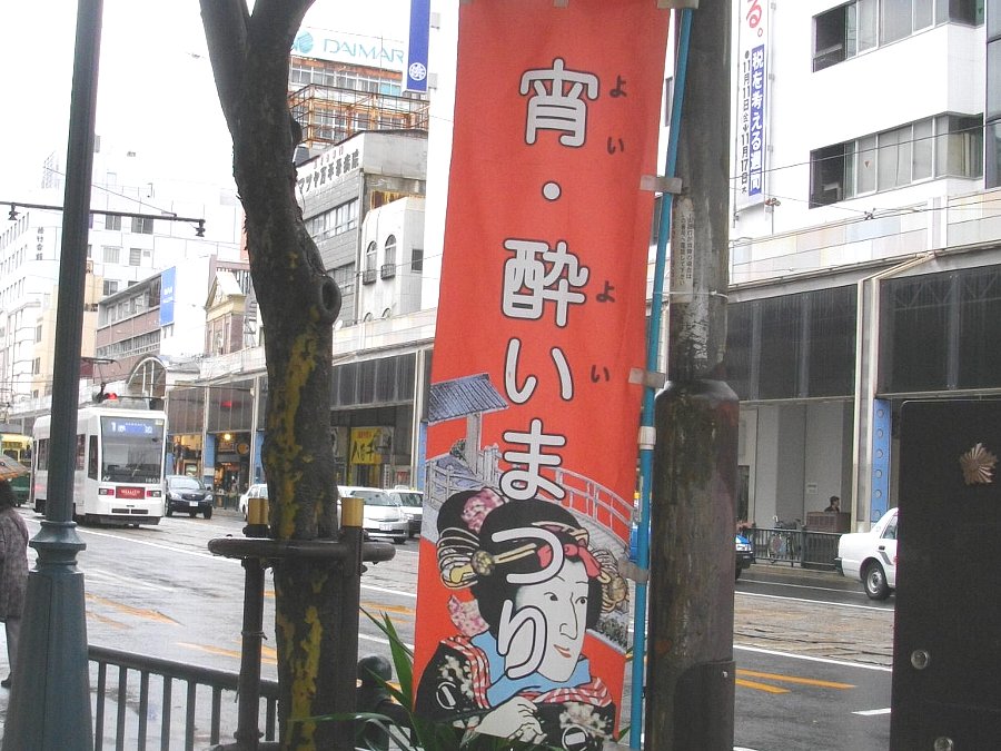 銅座の町のあちこちで「宵・酔いまつり」の幟を見かけます