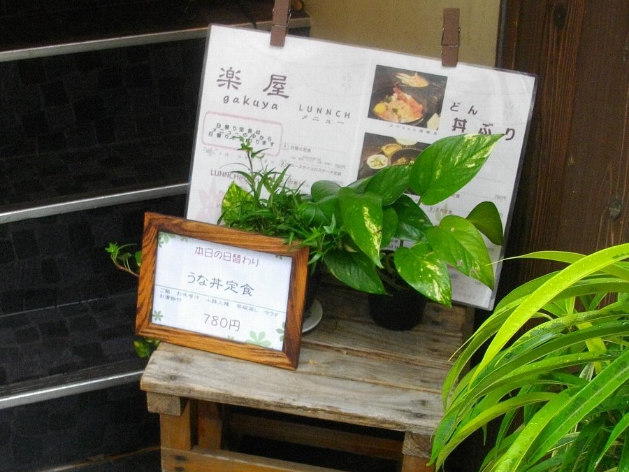 思案橋から浜町に戻る途中で見つけた「楽屋」というファミリーマートの2階にあるお店のランチメニュー・・・日替わりが「うなぎ定食」780円というのに女房が目を止めていました