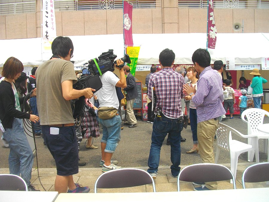 後援がNIBなので多分「ひるじげどん」で生中継するのでしょうね、私たちの目の前で撮影の準備をしていました