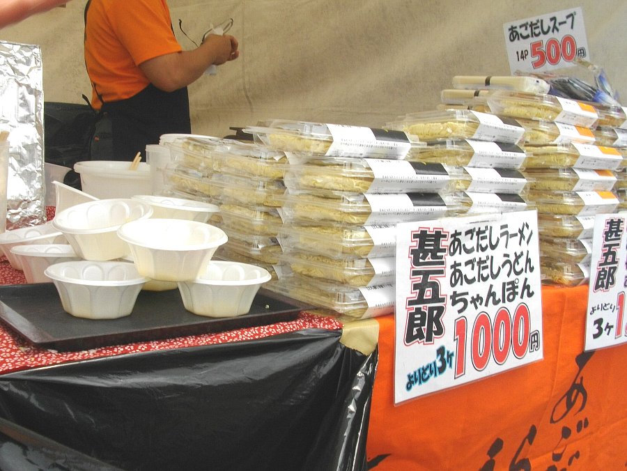 会場にはいろんな食のブースが出店していますが「県産品フェア」でおなじみ「あごだしラーメン」の「小林甚商店」がここでも試食を振舞っていました