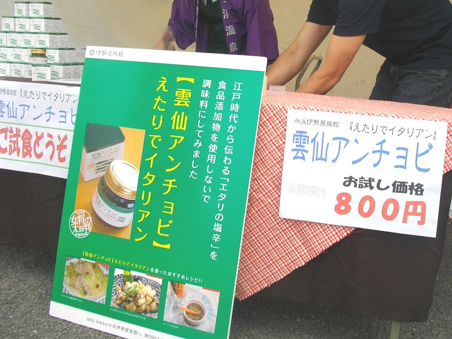 崇福寺近くの「和モダン 今かご」のブースでは何故か小浜の「伊勢屋旅館」の「雲仙アンチョビ」を販売していました・・・以前書きましたが「味の箱舟」に選ばれている「エタリの塩辛」を使ったというこの「雲仙アンチョビ」は美味しかったですね、明日行く人は試食してみるといいと思います。