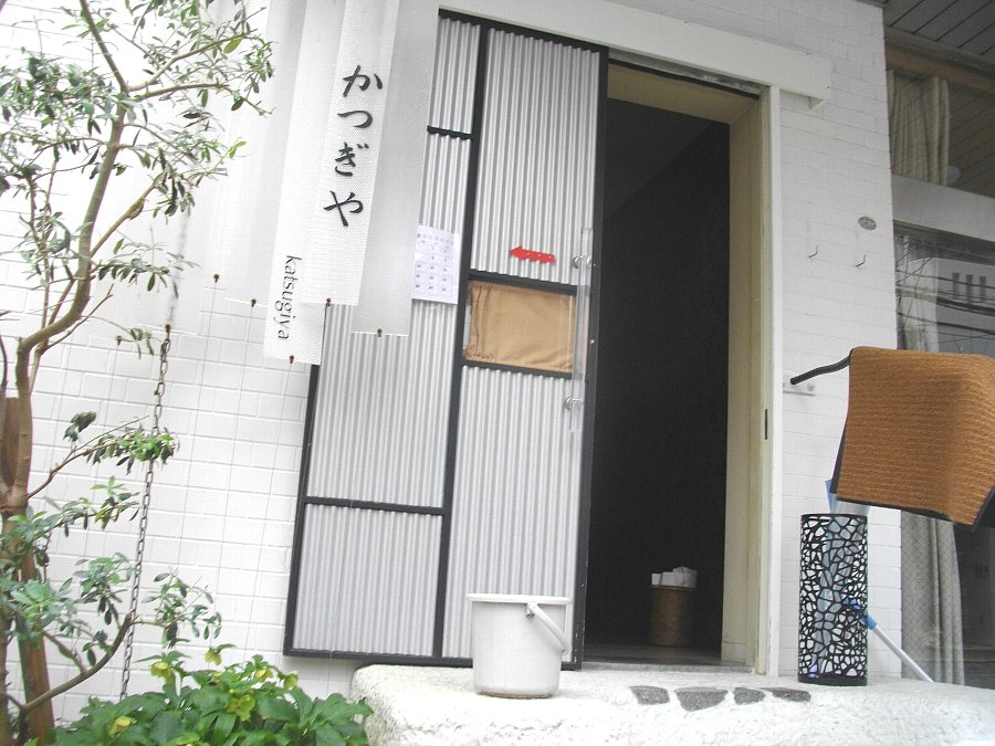 ぶらぶらと長崎駅前商店街付近を歩いていると目に留まったのはずっと以前から営業している「旅館まき」の一角にできた「かつぎや」という新しいお店・・・店内の様子を表から見た限りでは居酒屋かな?
