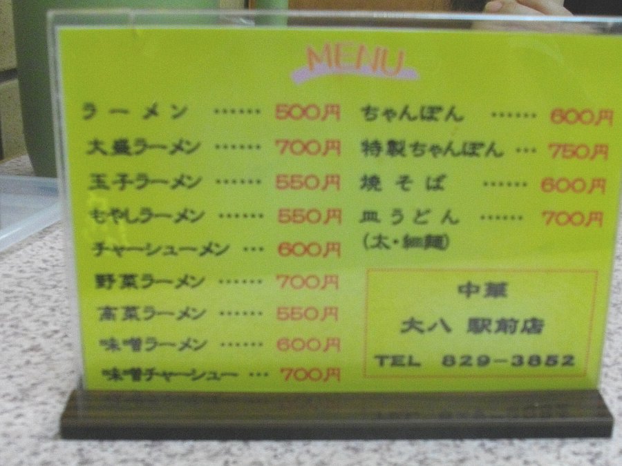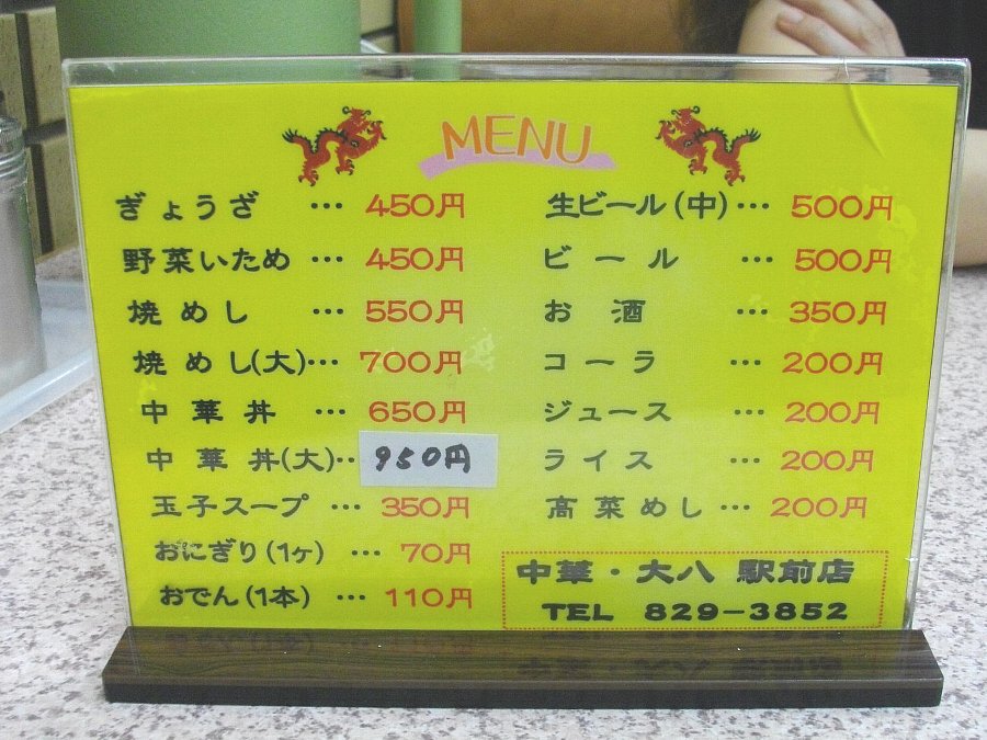 結局「つけ麺 洋ちゃん」の向かいにある「中華 大八」 駅前店で食べることにしました