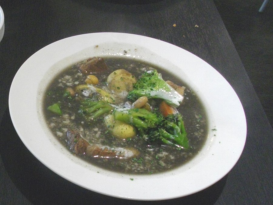 私は「牛バラ肉の黒ゴマソース煮込み」とライスを頼みましたが、おそらく生まれて初めて食べた料理でしょうね。バラ肉がホロホロしていて美味しかったですし野菜もよく煮込まれていていい味が出ていました・・・この料理はライスよりもパンが合いますね