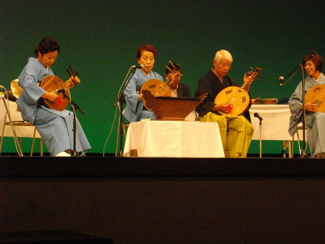 舞台の幕が上がり最初に登場したのは「長崎明清楽保存会」の方々・・・他の演し物はともかくこの明清楽は館内でやることになって良かったですね