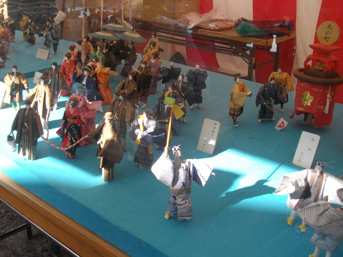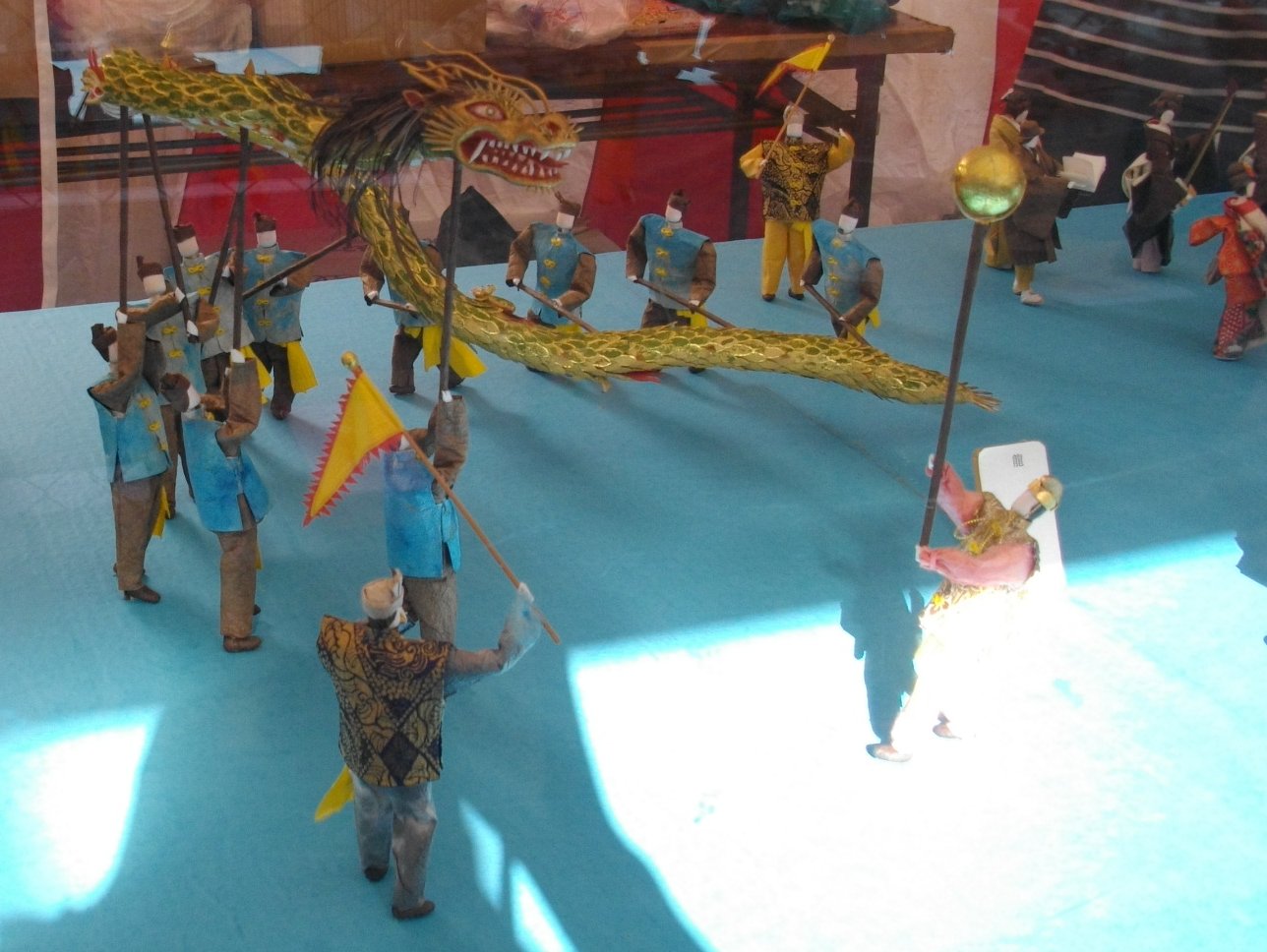 商店街の中ほどにありイベント時に餅つきなどをしているスペースで10/3・4の二日間、長崎くんちを模した故岩永麗子さん作の和紙人形の作品が展示されるということをたまたま長崎新聞のサイトで知ったので見に来たのです