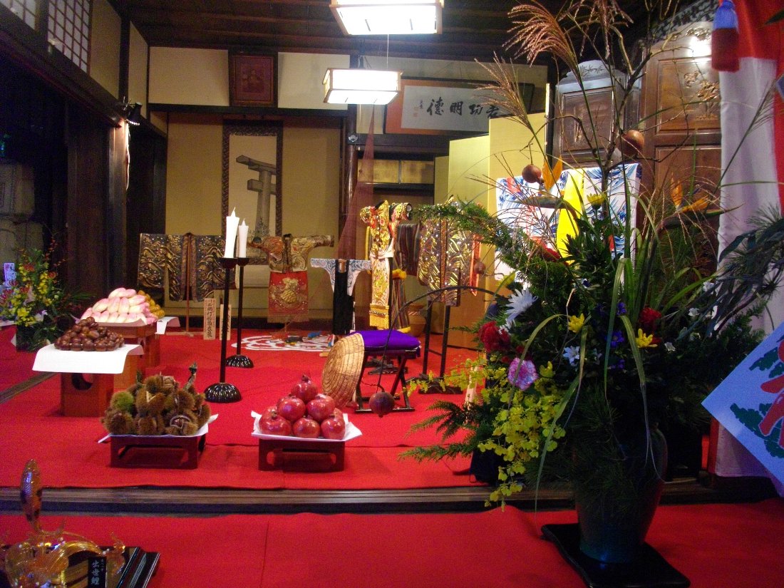 時間が早かったおかげでスムーズに庭に行くことが出来ましたが座敷に飾られていた衣裳や「花」の数々