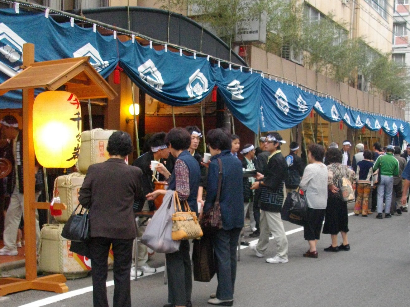 松翁軒の先の路地を入ったところにある「チヂワグループ」の前にも大勢の人が並んでいましたがここでは手拭いも配布していましたしお酒も振舞っていました