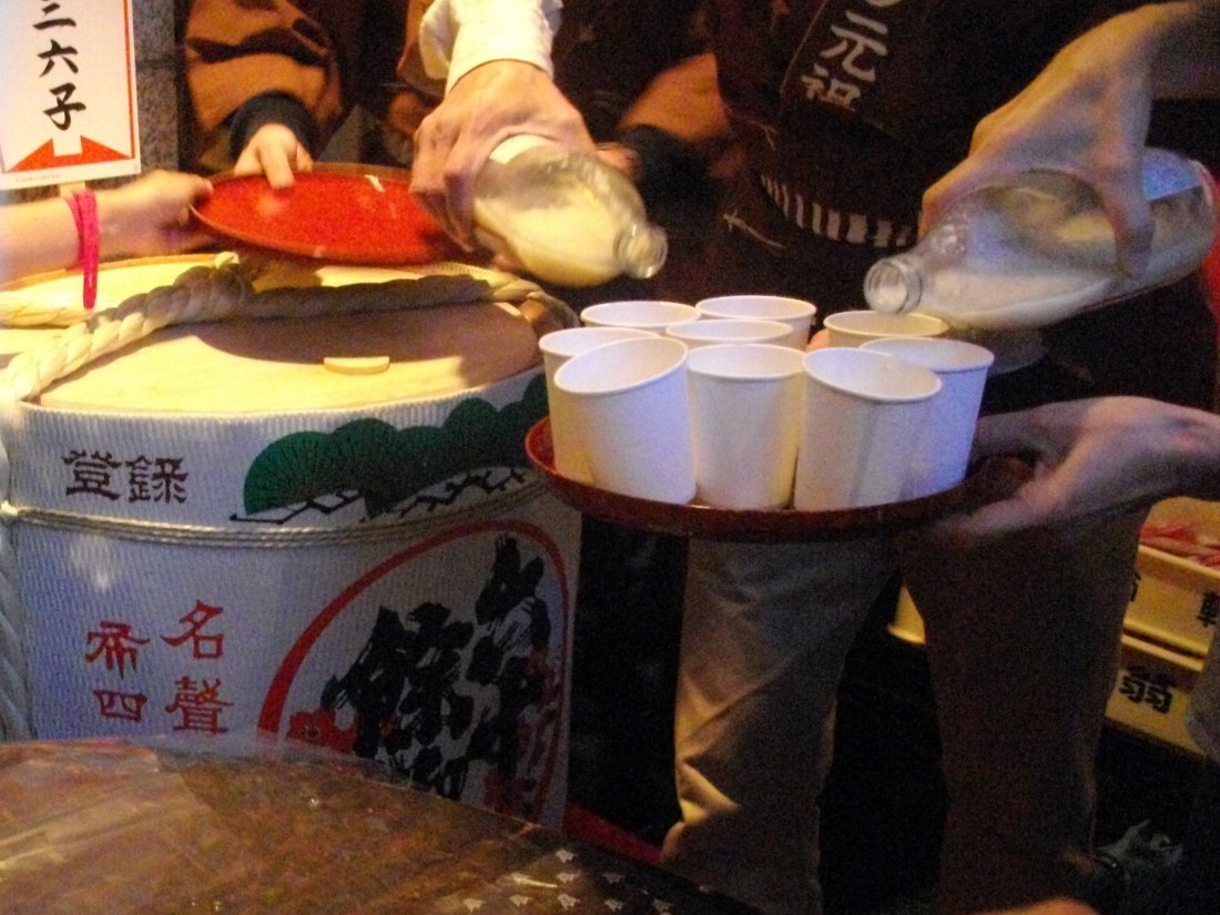 出口では久しぶりに振る舞い酒のサービス・・・ひと嘗めだけさせていただきました