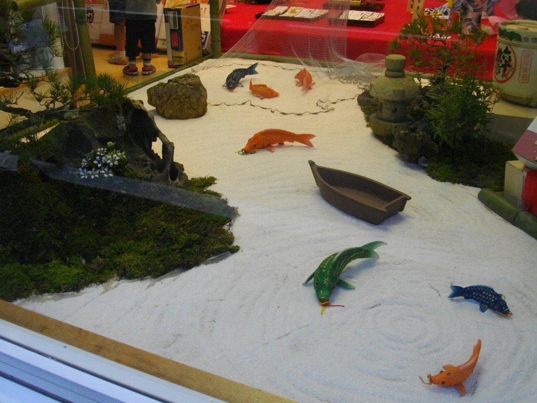 さらにここでも庭を再現していました・・・枯山水に鯉が泳ぎ網が打たれていますから「川船」を現しているんですね