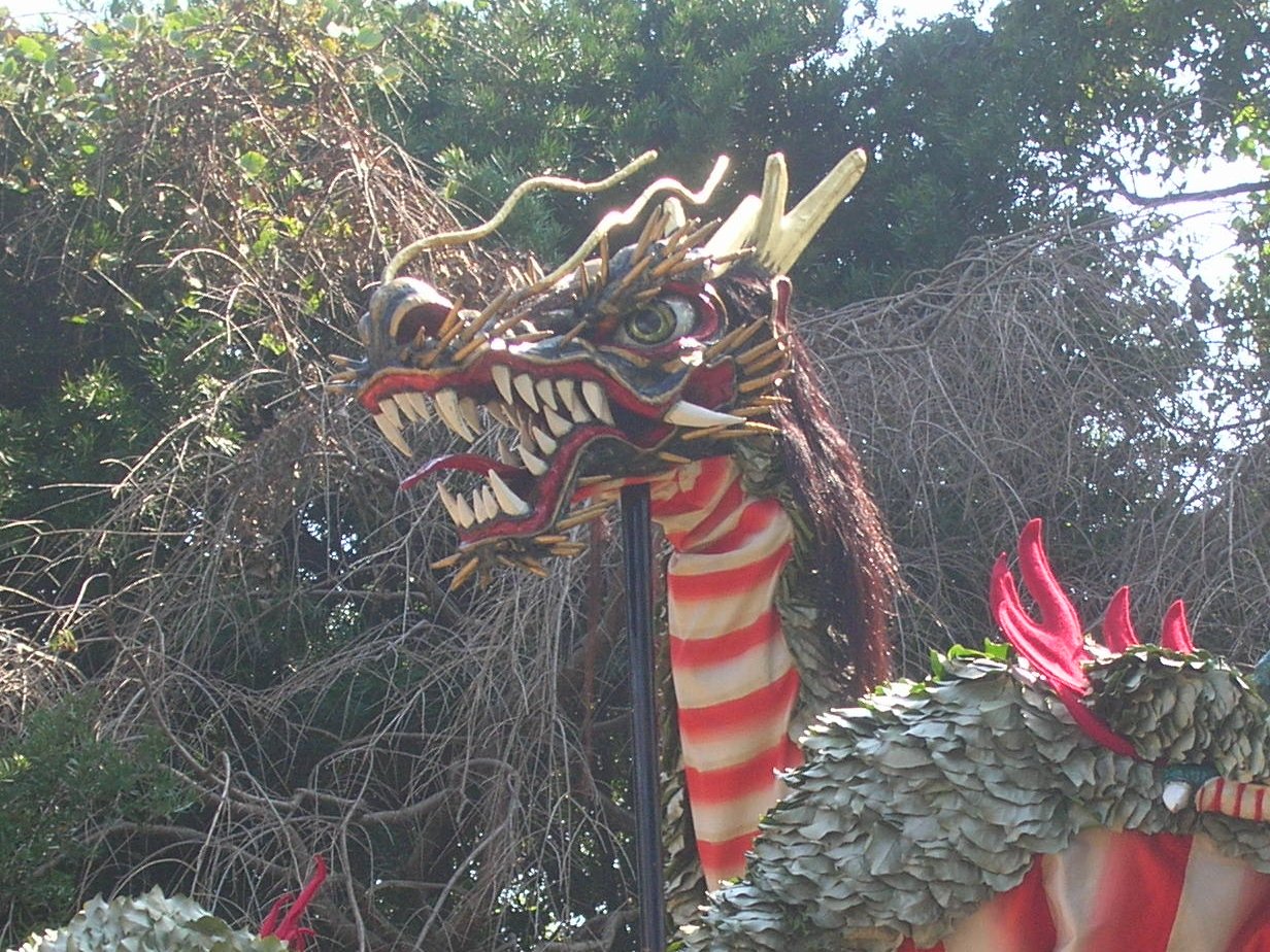 前の記事でも書きましたが「ウロコ」には生の葉を縫いつけていますから動くとはらはらと飛び散ります