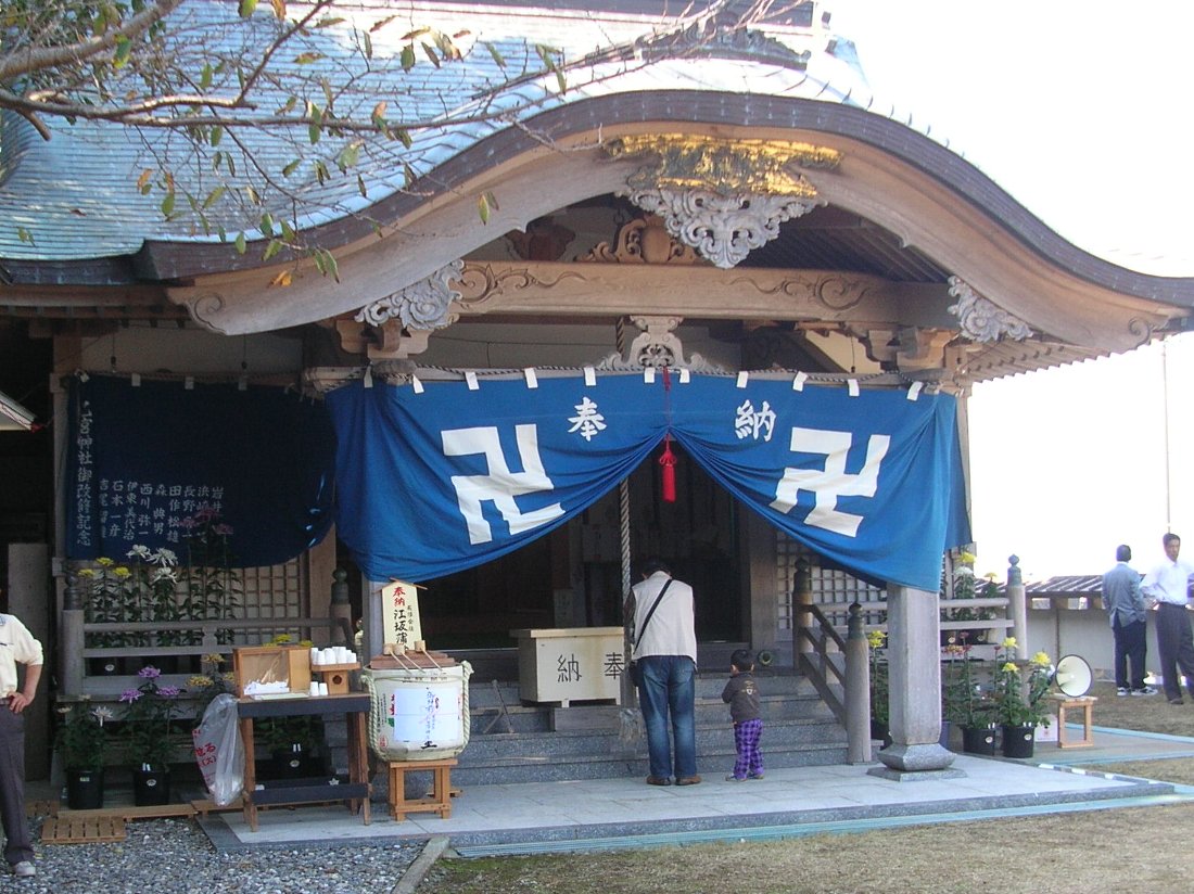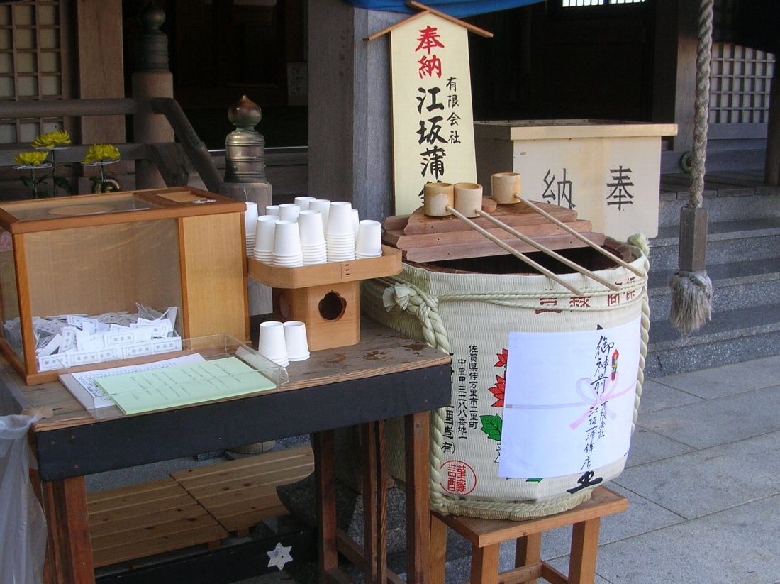 今年もお神酒が用意されていますが提供されたのはこれも以前記事にした「もう1軒の式見かまぼこ店」である「江坂蒲鉾店」です・・・この神社には元旦にもお神酒の樽が用意されていますがいつも「江坂蒲鉾店」ですね(^^)
