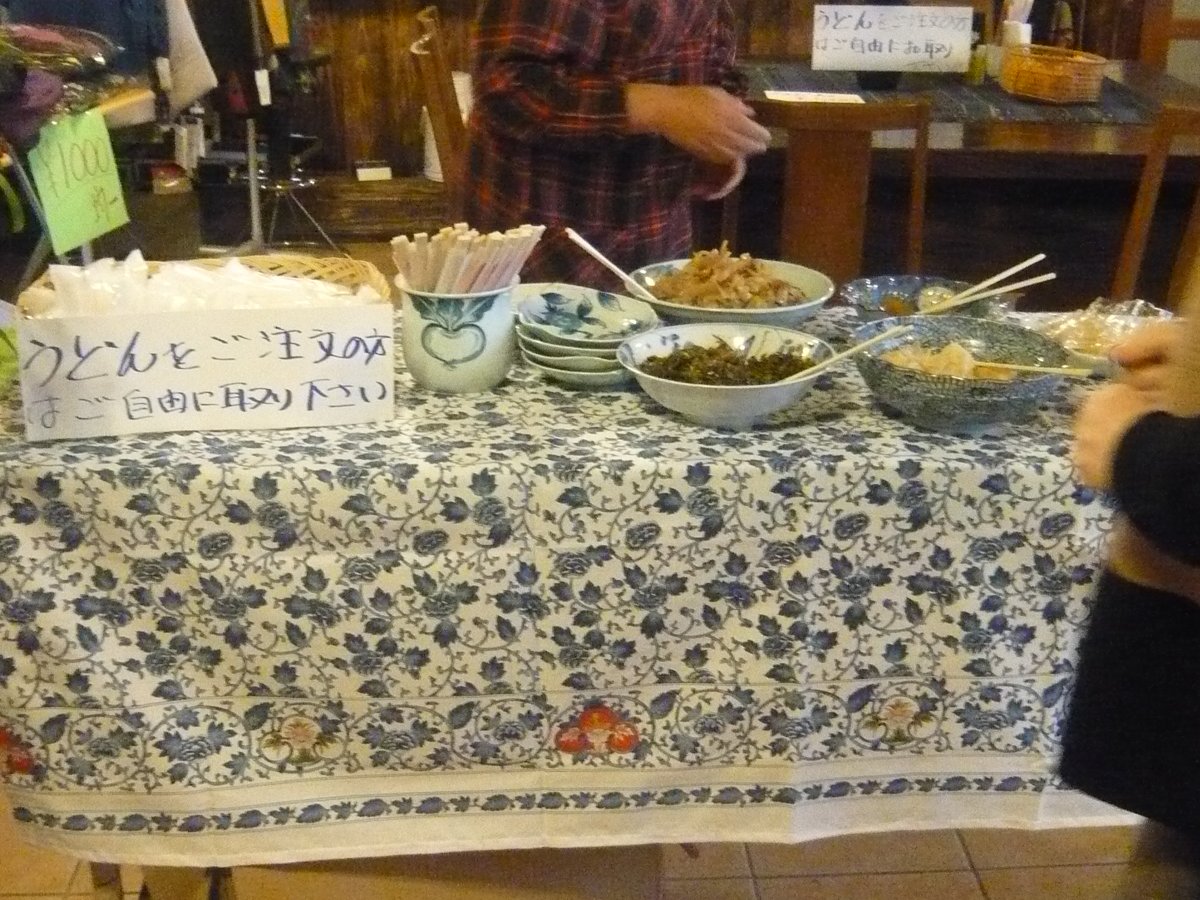 うどん500円を注文するとこのテーブルに載っているお惣菜やおにぎりが食べ放題みたいです・・・お客さんが結構多く「おもてなし」のコーヒーサービスまでは手が回らないみたいでした