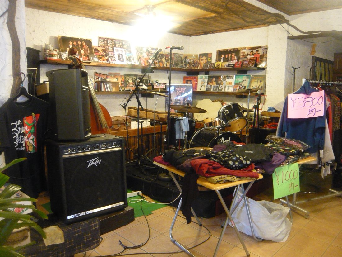 店内で目立っているのは古いレコードと楽器!