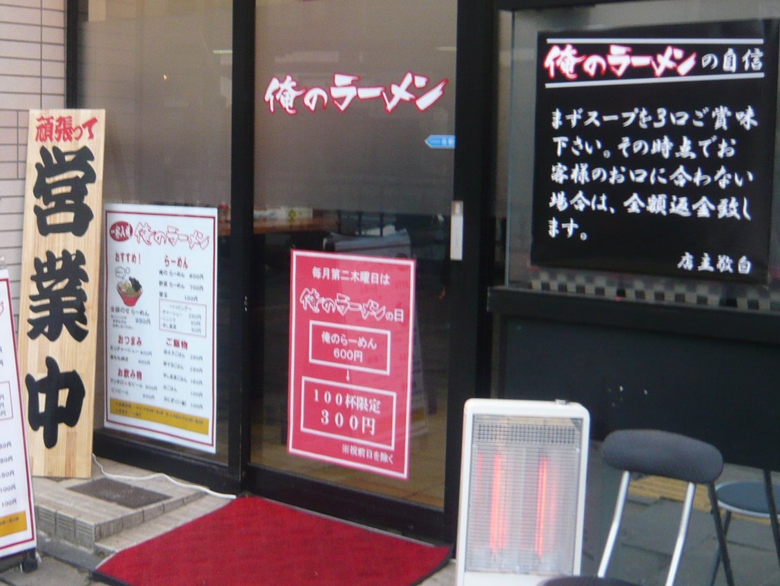 店の前に貼っているポスターによると毎月第2木曜日は看板メニューの「俺のラーメン」が半額になるそうです