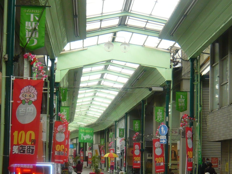 アーケードを通り「大村浜屋」に向かったのですが途中あちこちに「100円笑店街」と書いたノボリがありました