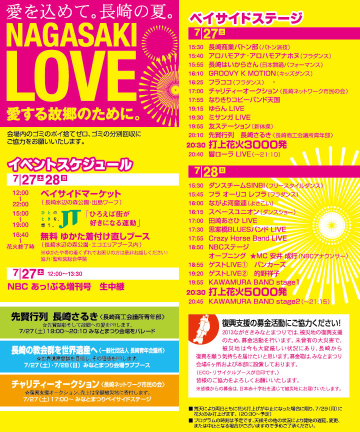 毎年恒例の「ながさきみなとまつり」が今年も7/27・28に水辺の森公園で開催されますね
