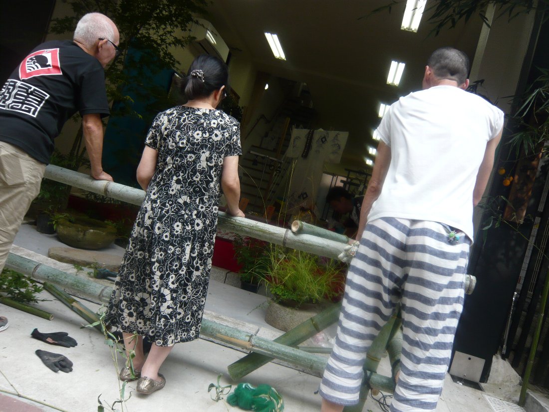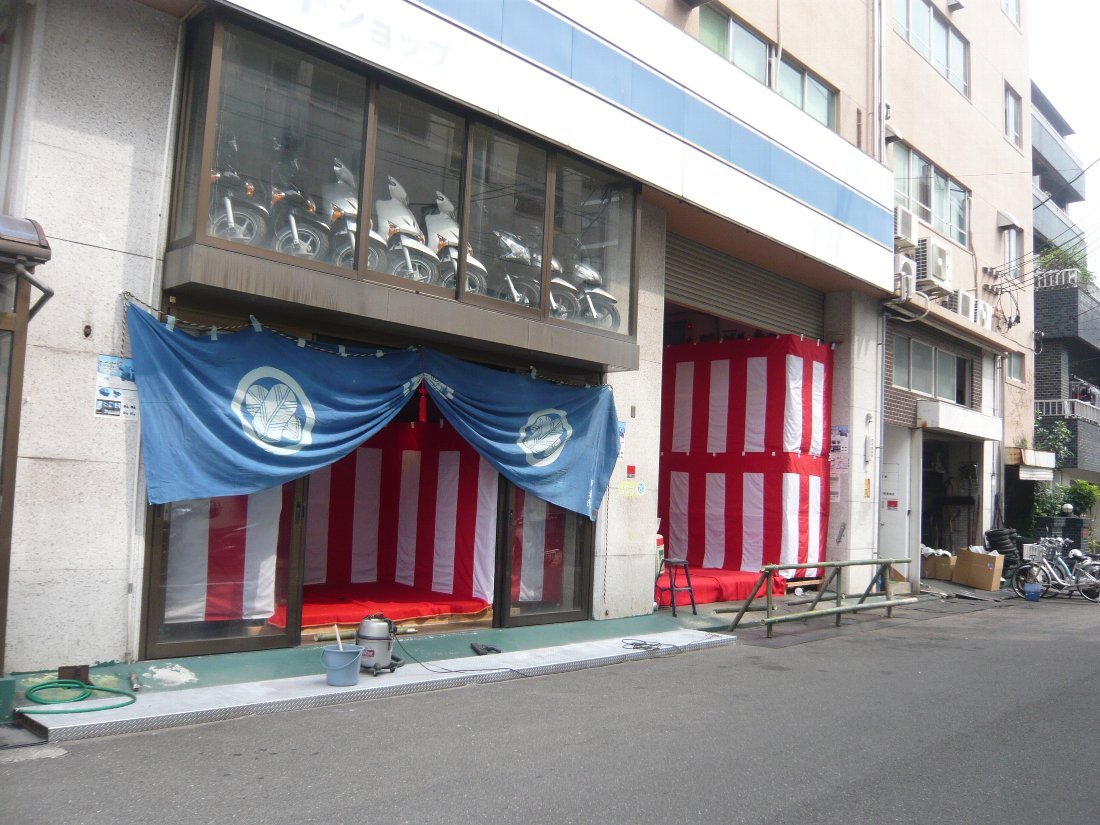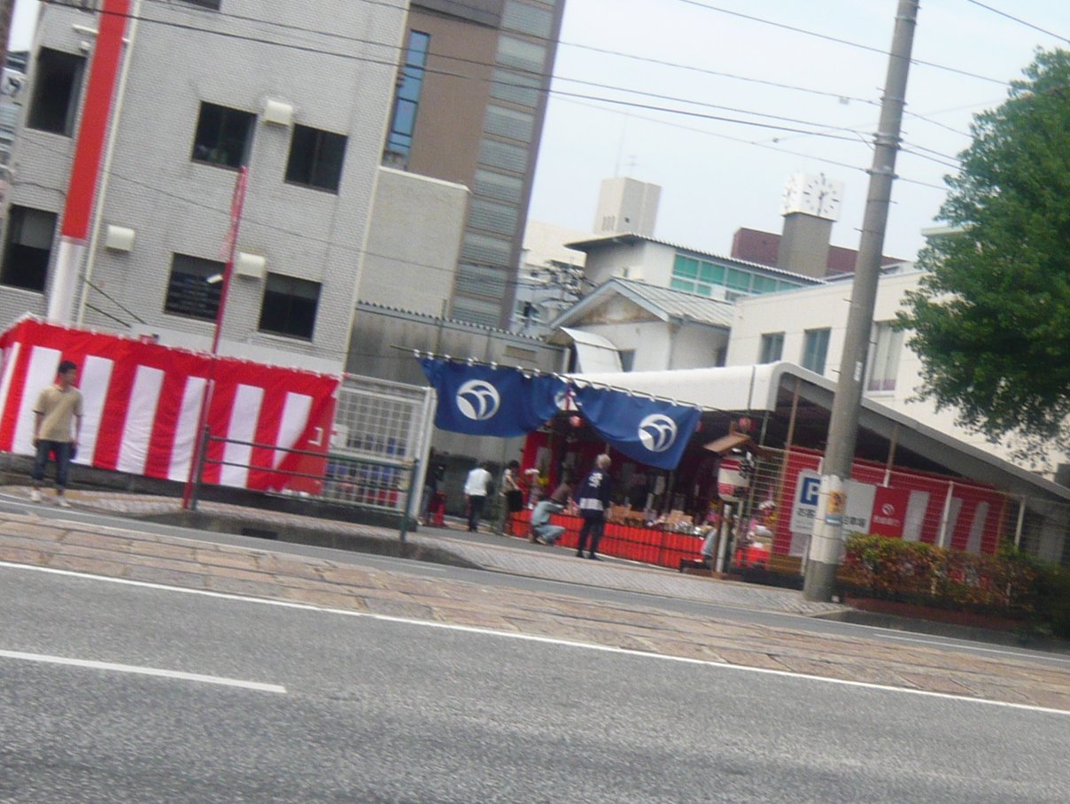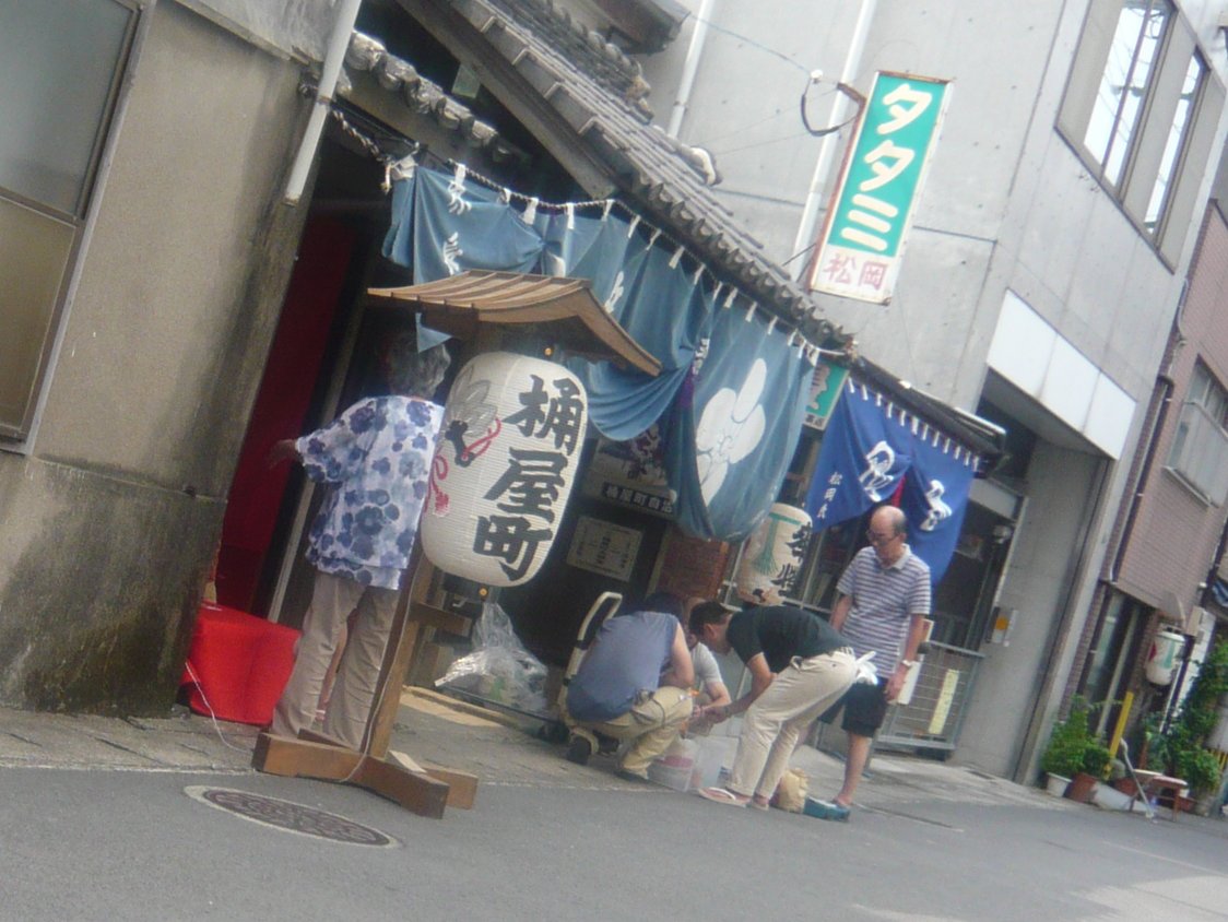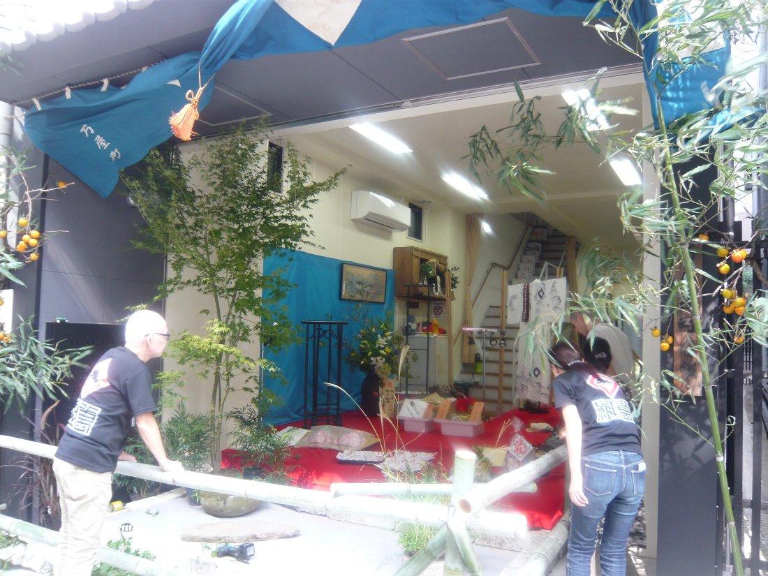 浜町に行く途中の桶屋町にある岡東ビルでは傘鉾を飾る場所を造っていました