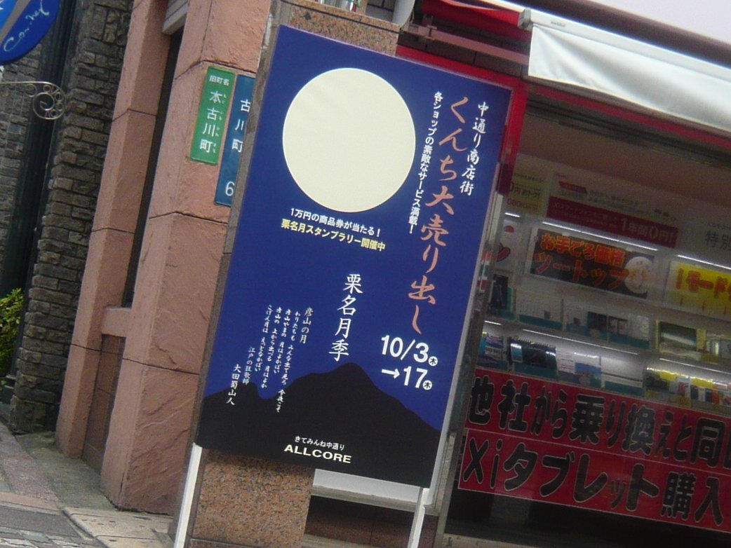 中通りでは「くんち大売出し」というのを10/3から開催するみたいですがこの看板には見覚えがありますね・・・過去の記事を調べると昨年は「名月季」といっていました