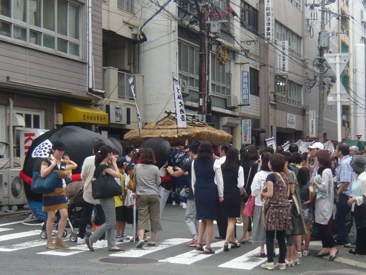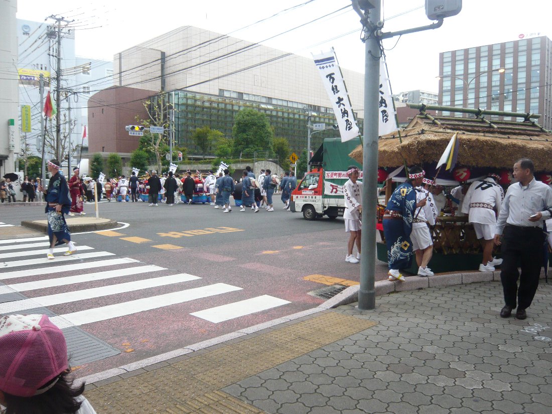 女子商業の前を通り過ぎたところで隣の道を進んでいる万屋町の行列を発見!