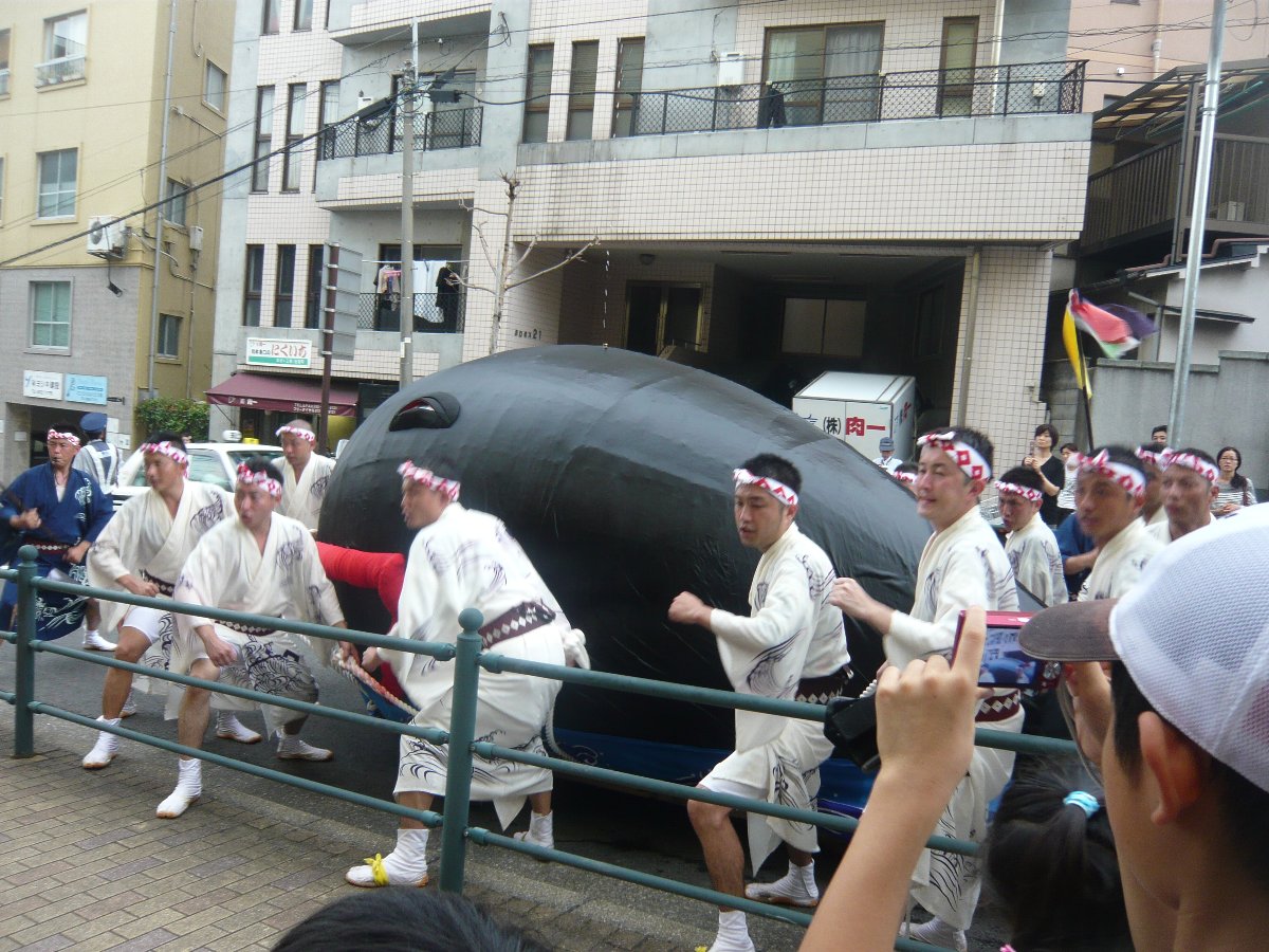 ちょっと休憩するとたちまち鯨の周囲には人垣が・・・鯨との記念撮影をする人もたくさんいました