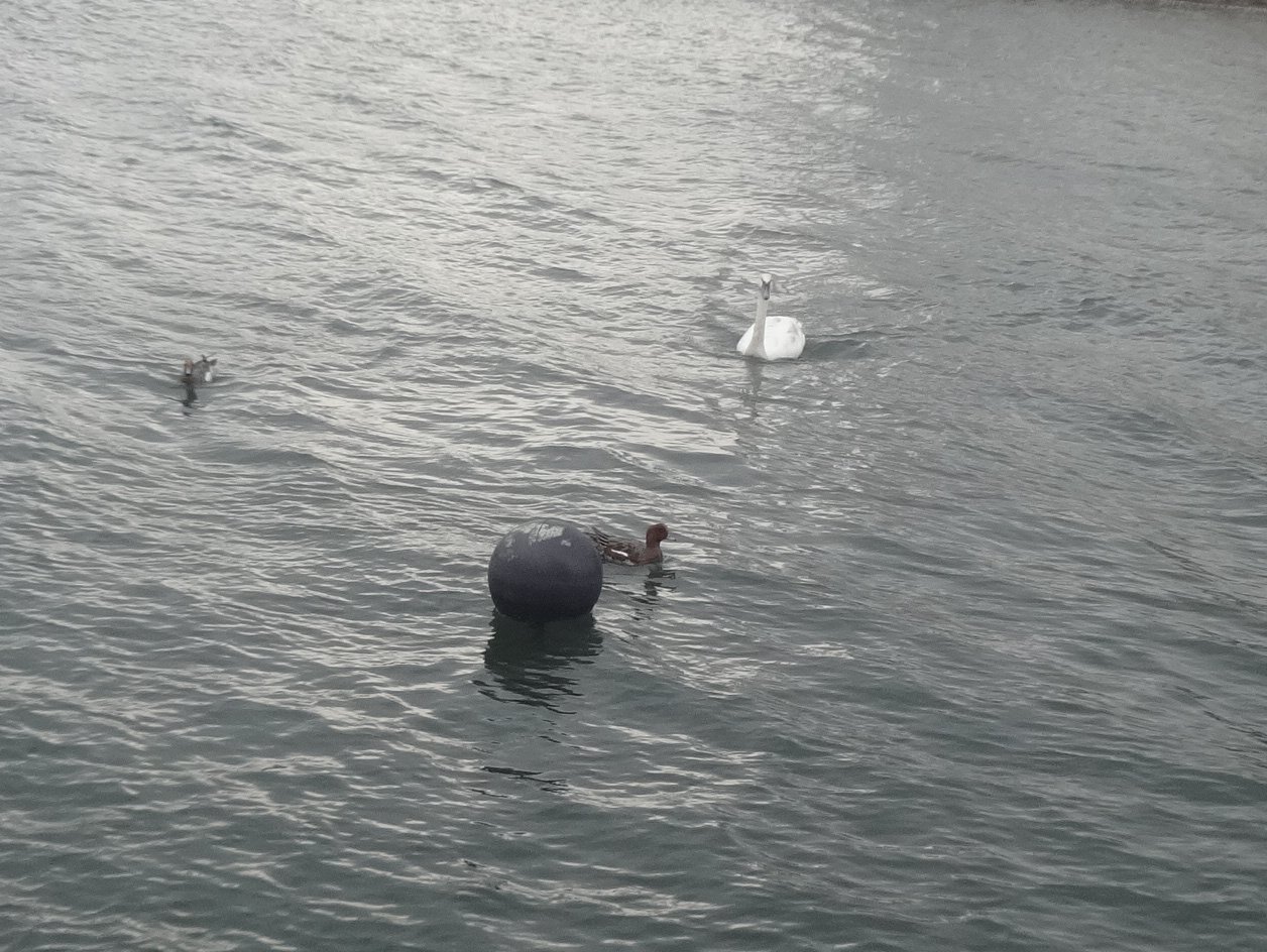 白鳥とカモが泳いでいましたが長崎で白鳥を見るのは神浦以来です(^^)