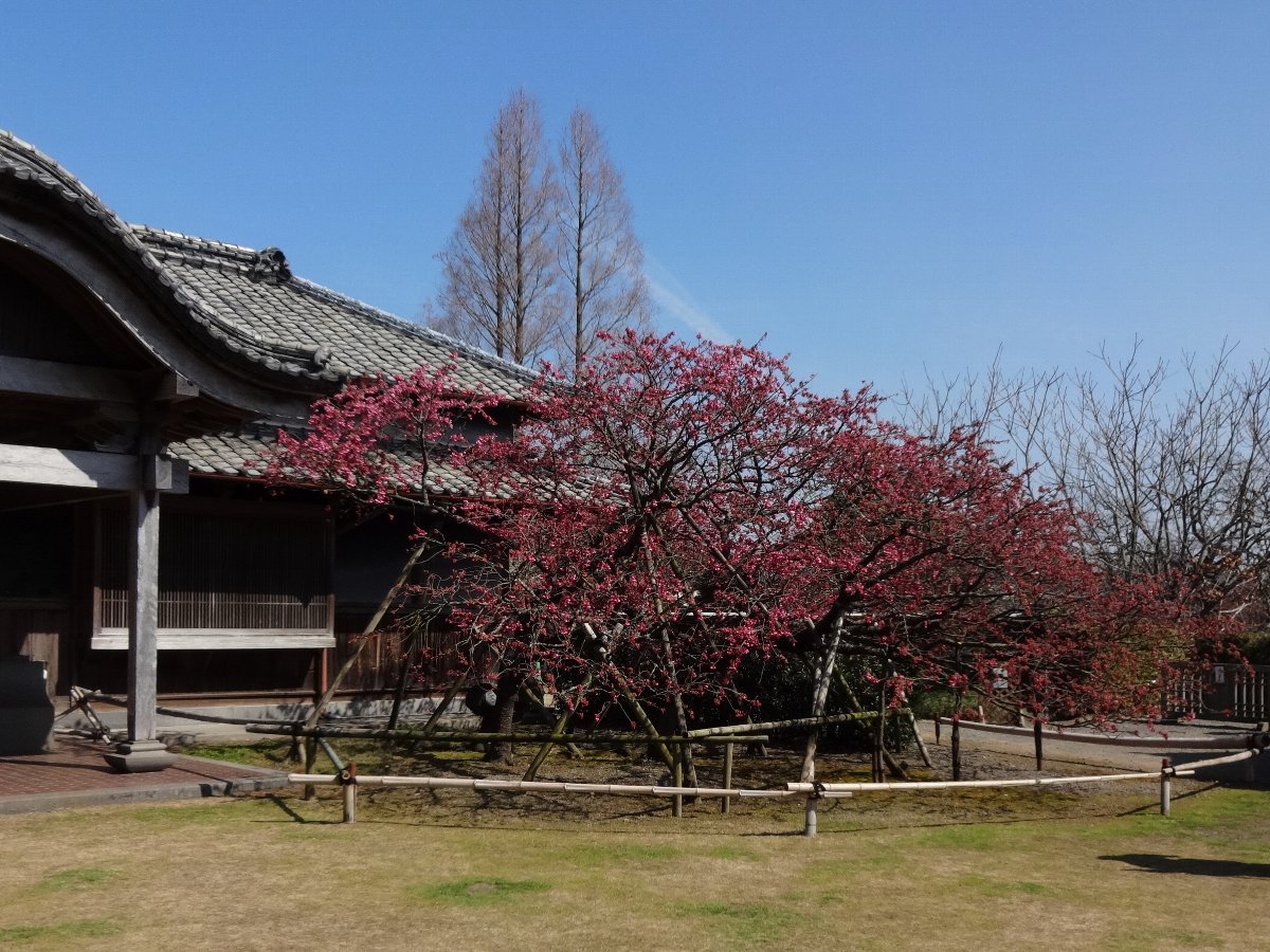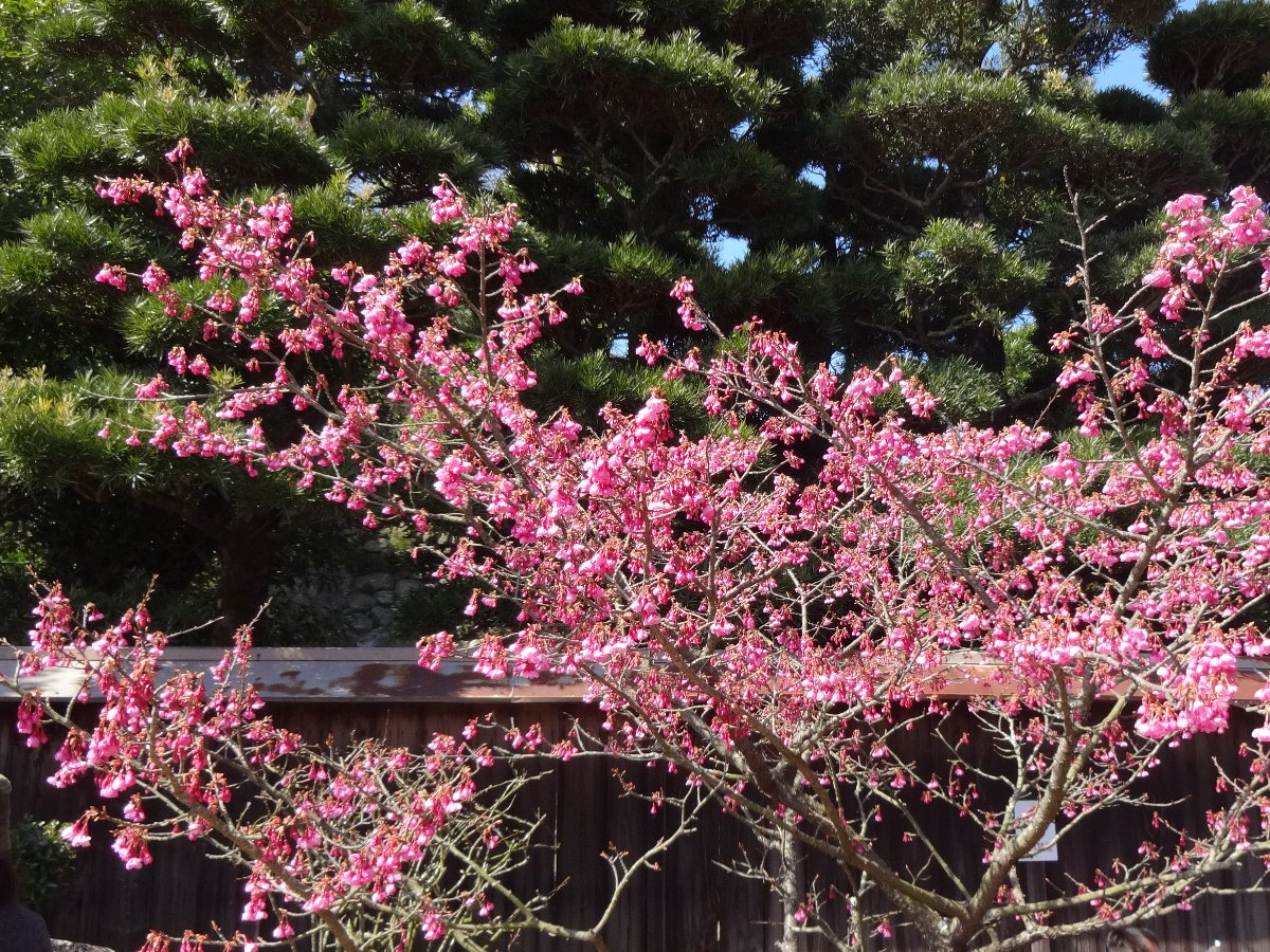 邸内に入ると先ず目に飛び込んでくるのが写真などでお馴染みの「緋寒桜」ですが