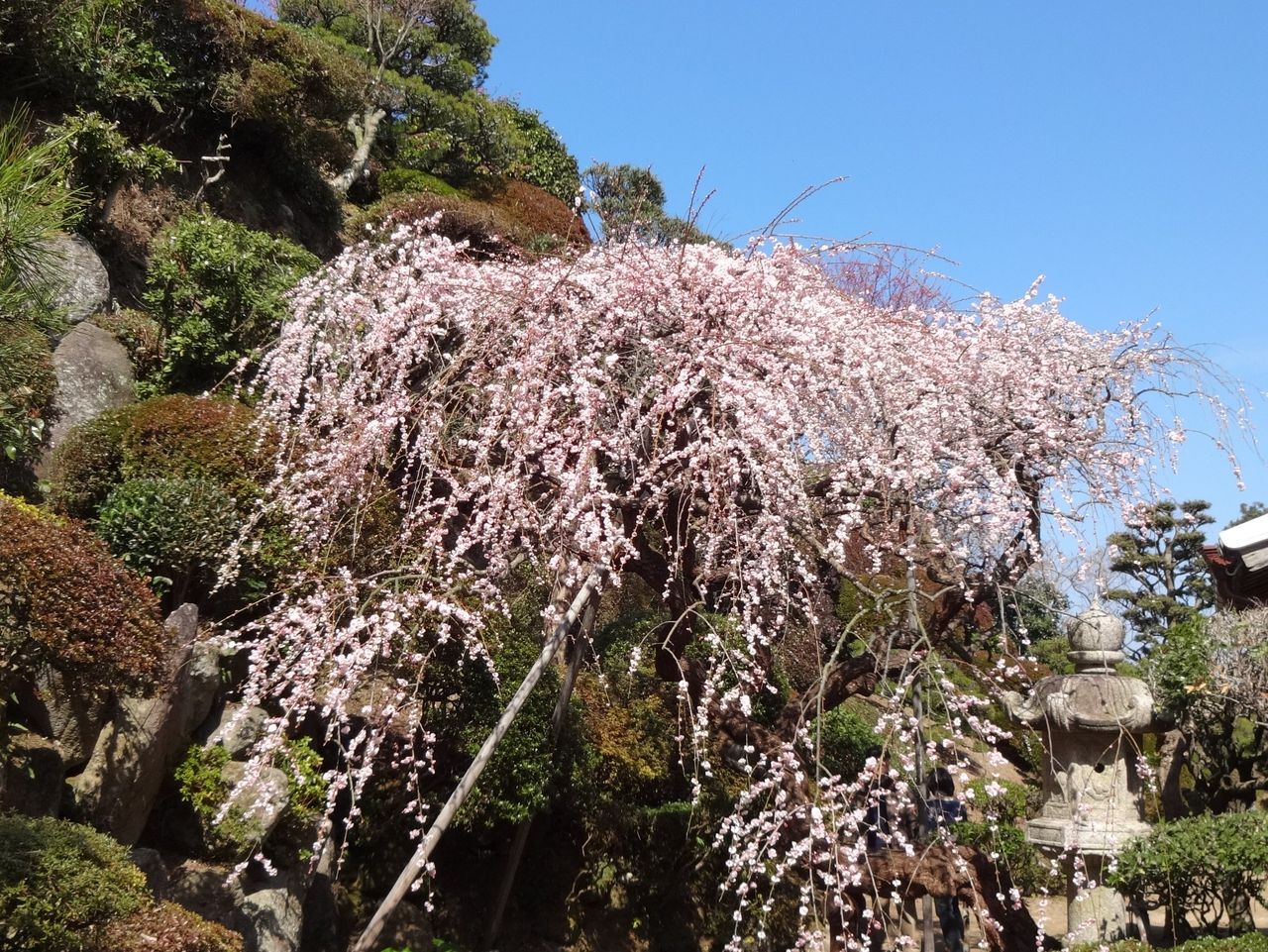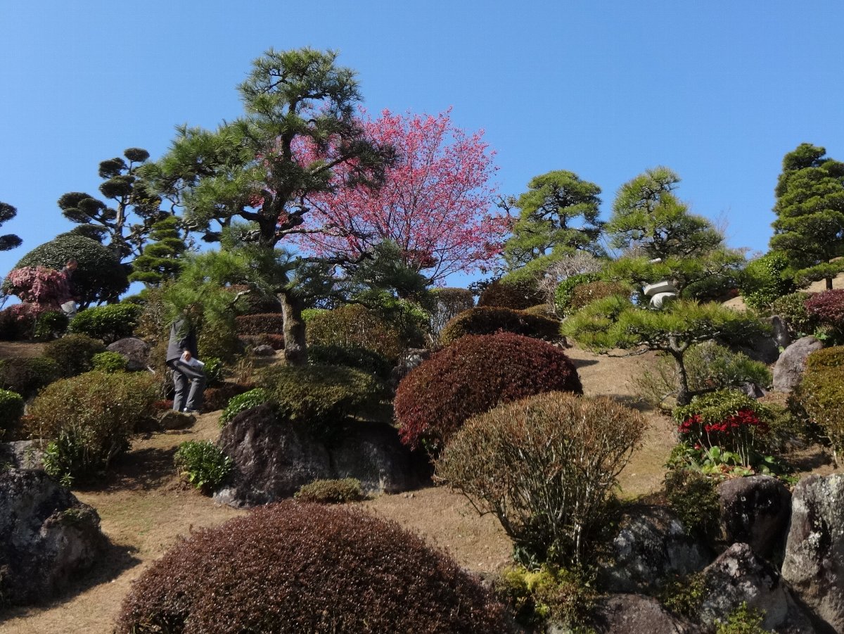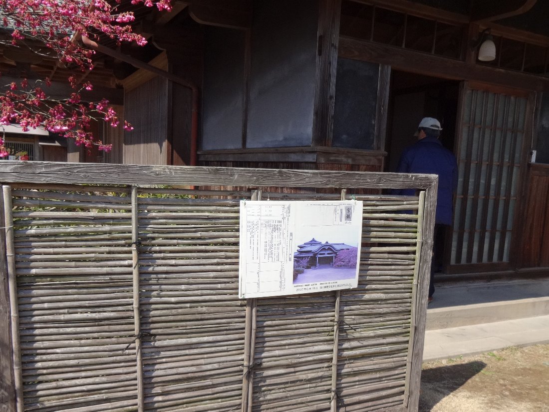 「鍋島邸」正面の緋寒桜はまだでしたが庭園入口脇にあったのはほぼ満開です
