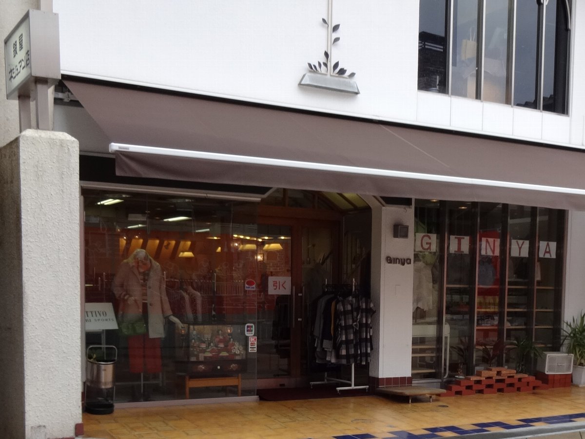 向かいの「銀屋ネジュアン店」というお店は服と並んでショーウィンドーの中に飾っています