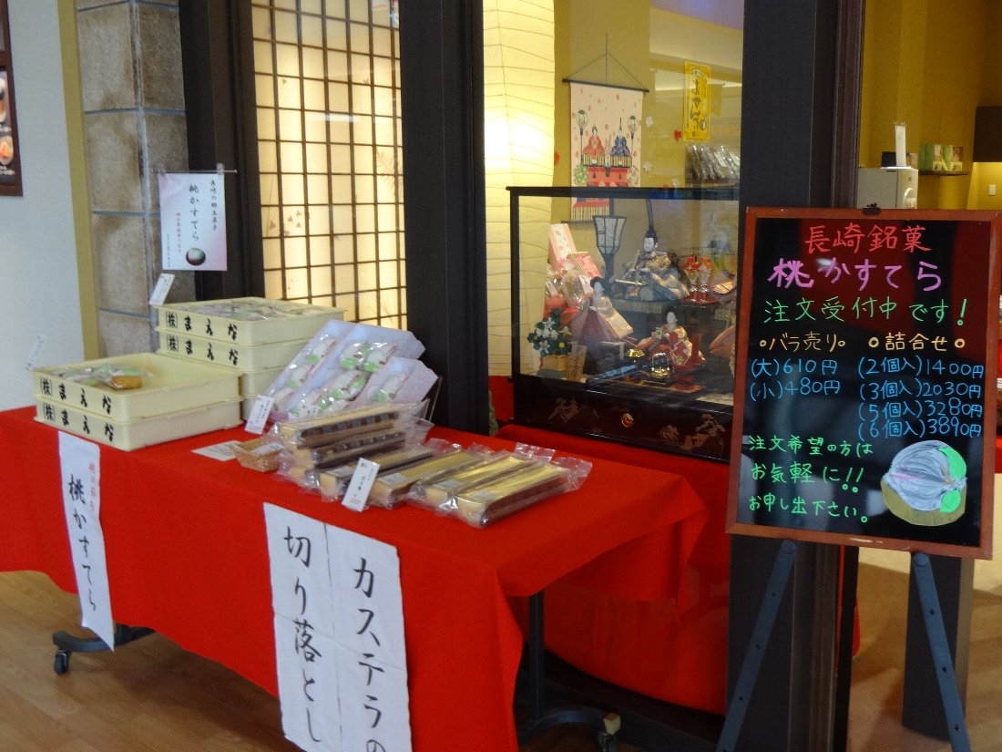 その並びにある「御菓子処 まえだ」の店頭にはカステラの切れ端や桃カステラに混じって雛人形も飾っていましたがこのお店も「長崎街道大村宿ひなまつり」に参加しているのでしょうね