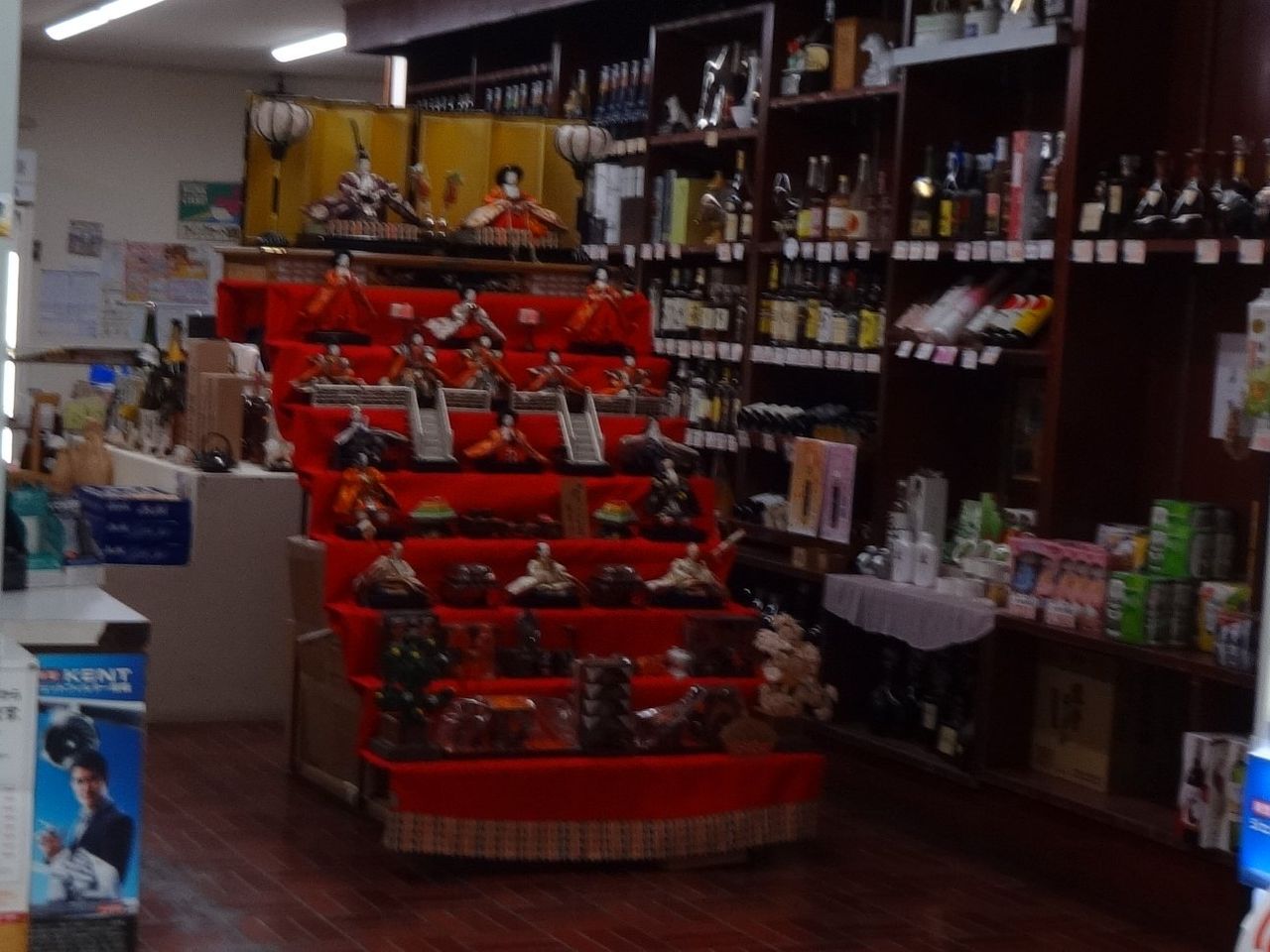 すぐそばの「酒のカワゾエ」では店の中央に段飾りがありましたが邪魔にはならないのかな?