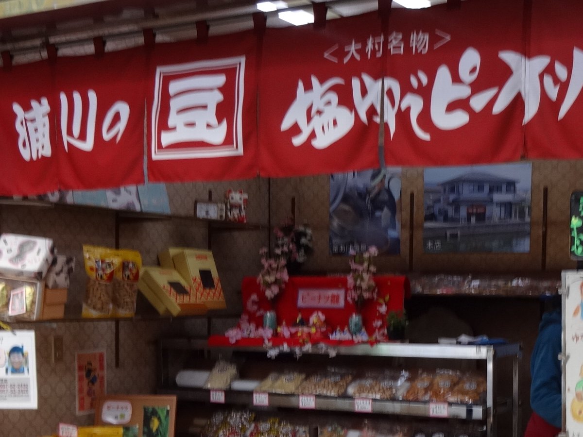 「塩ゆでピーナツ」で有名な「浦川豆店」の直売所にもひっそりと飾られています